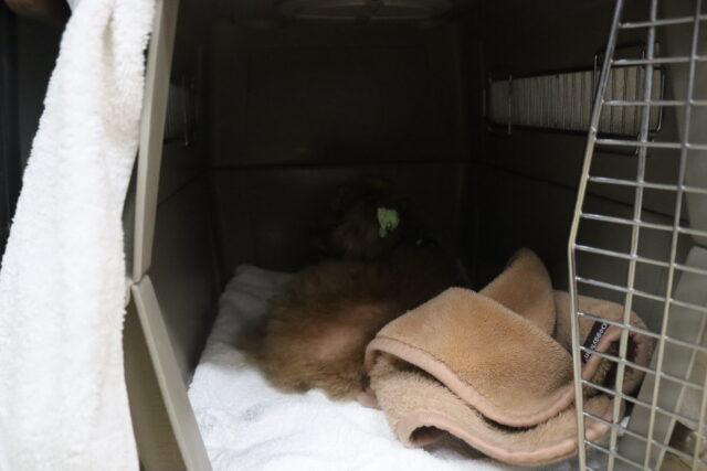 マロンくんはトレーニング時間になりクレートを開けると「もうボクの番ですか?」とゆっくりと準備をし始め…