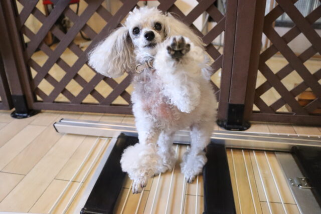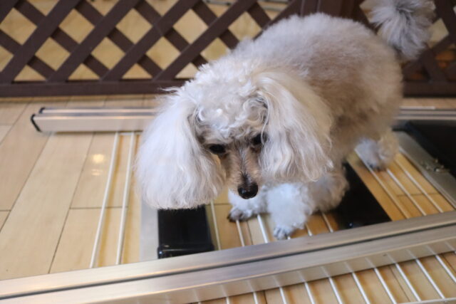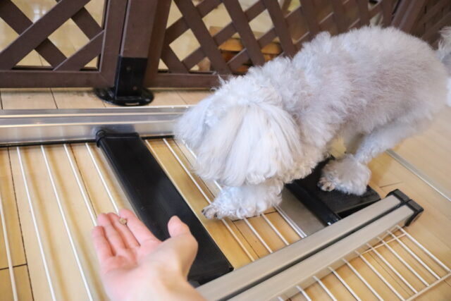 シルヴィーちゃんはサークルと脚立を使い物慣れ!