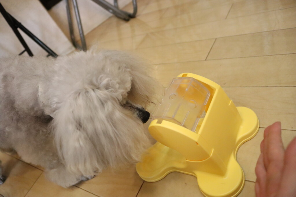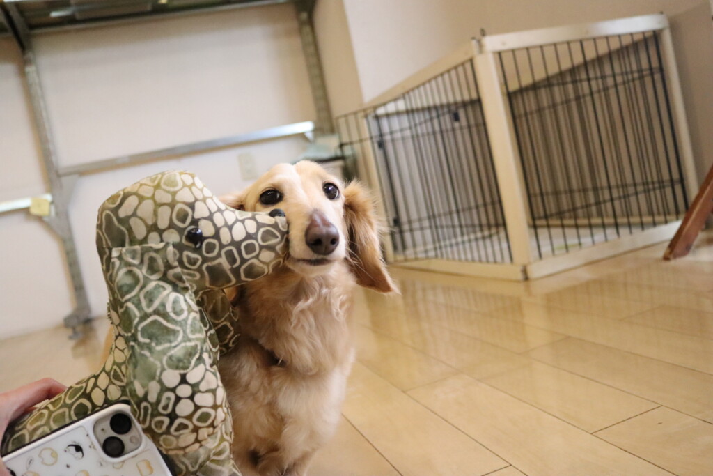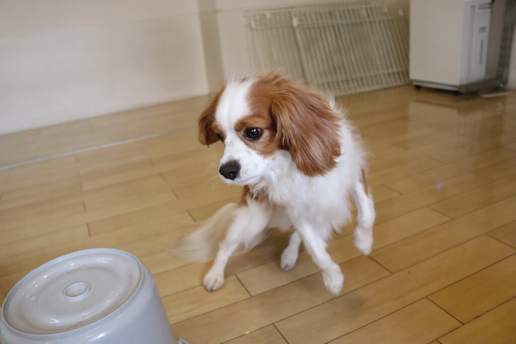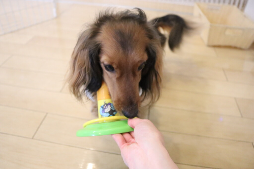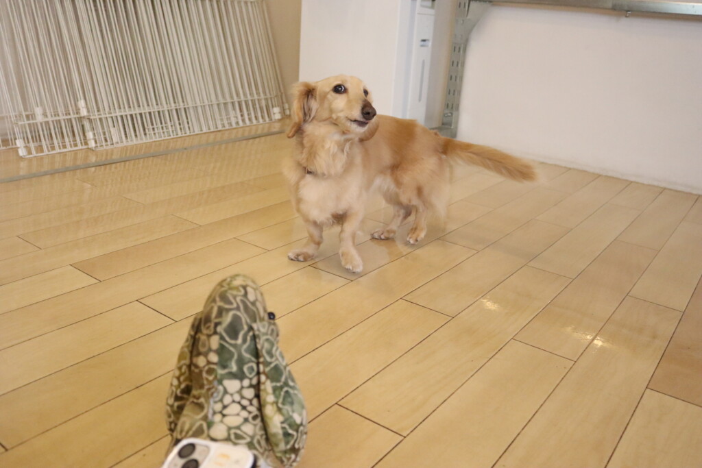「おいで!」とスタッフが呼ぶとオモチャの方へ一直線でしたが…