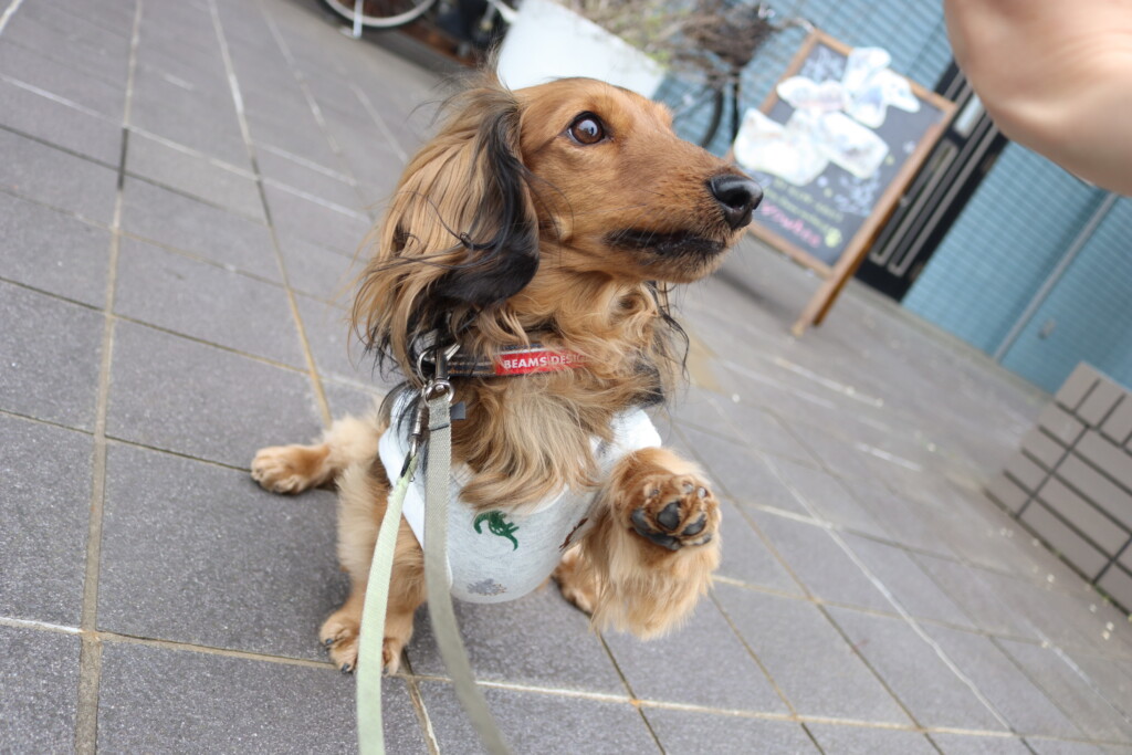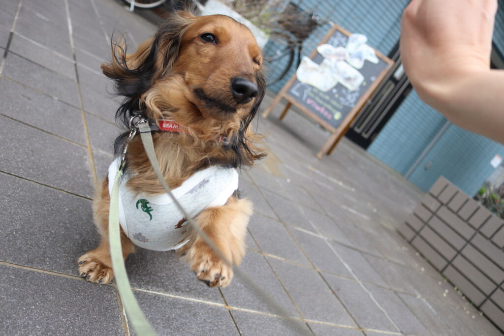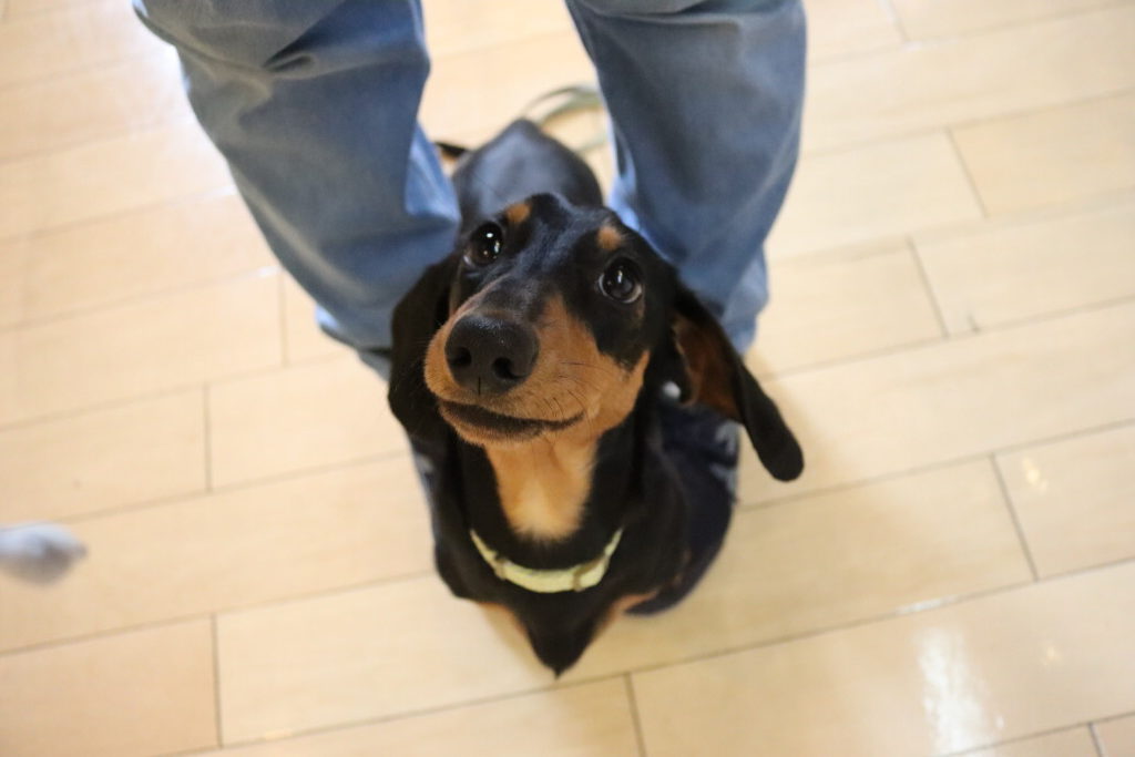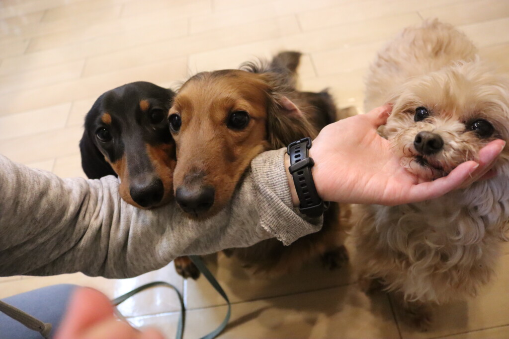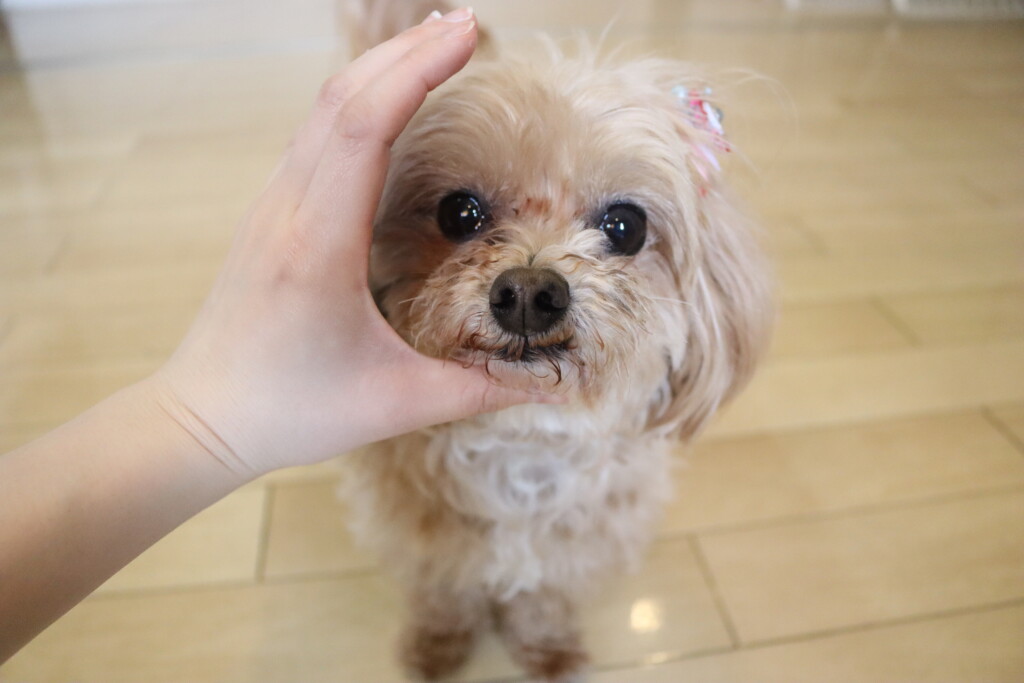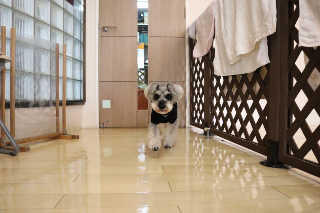 耳を羽ばたかせながらルンルンで走り、そのままスタッフの手の中にスッポリと顔を入れてくれています♪