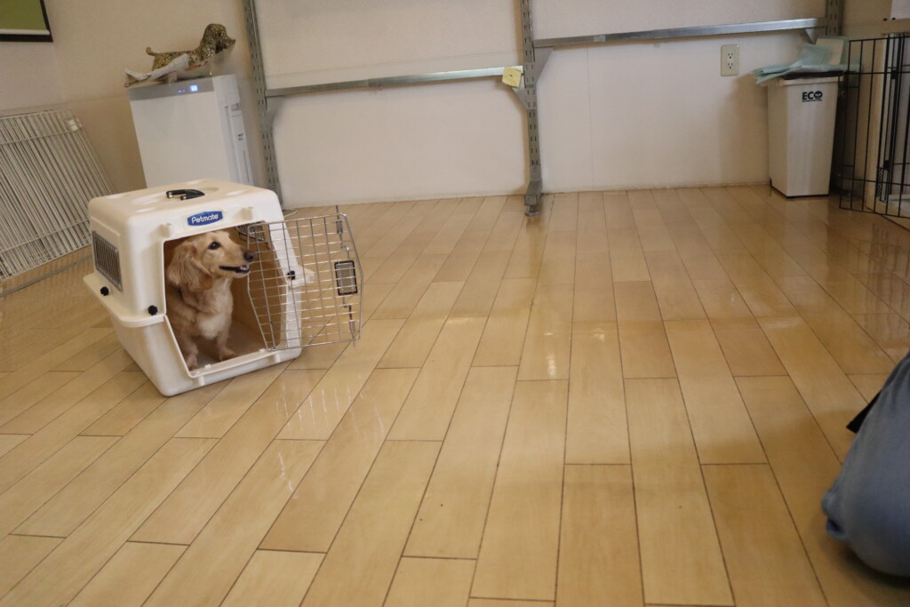 「クレートに入らなきゃ!」とスムーズにクレート内へ!