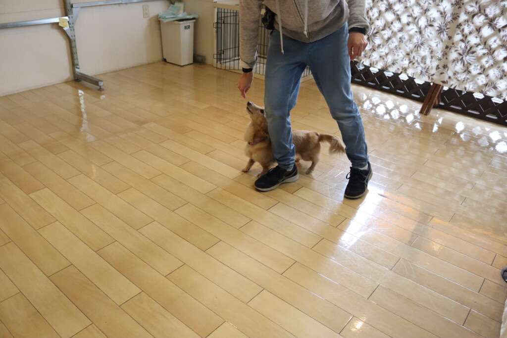 ピンポンハウスの練習ではスタッフの膝の上でくつろいでいる最中にインターホンの音が鳴ると…