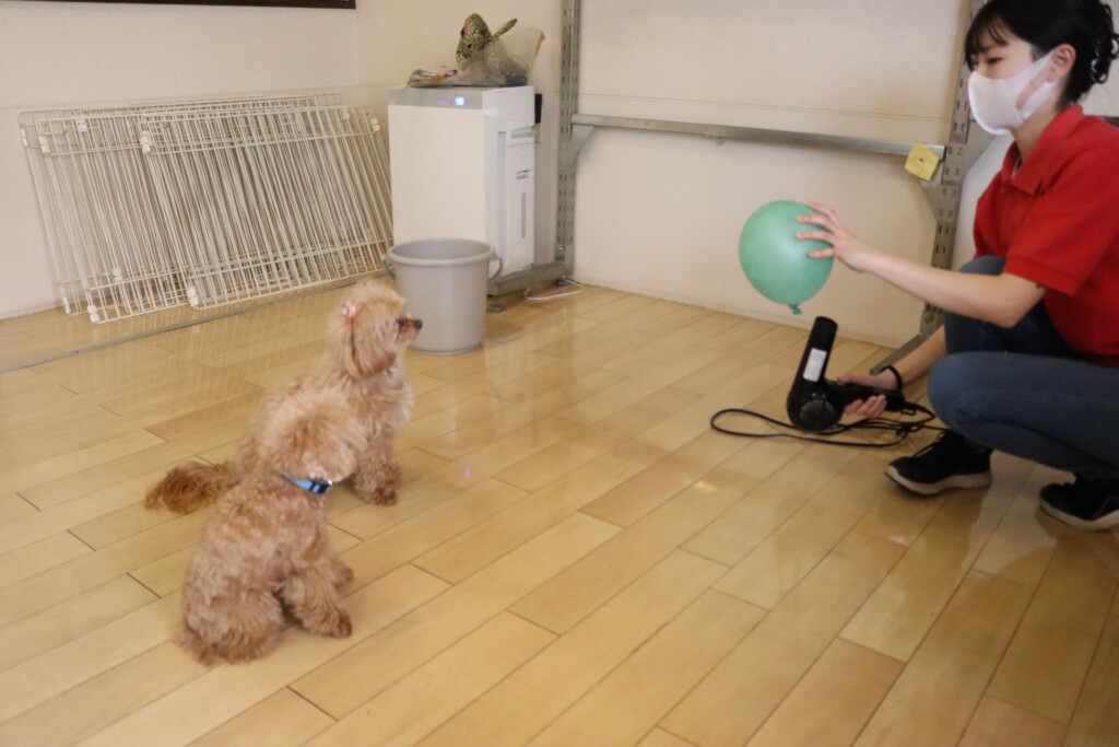 あずきちゃん・こむぎちゃん・テトラくん・シルヴィーちゃん・ルルちゃん・金ちゃんは風船を使い物慣れ!