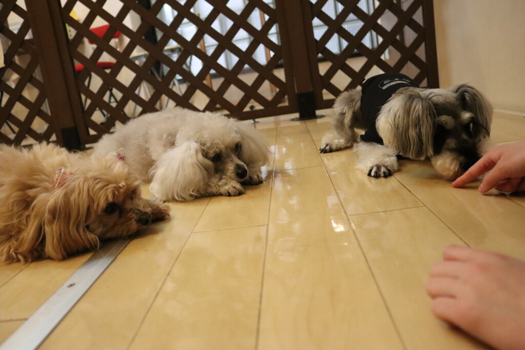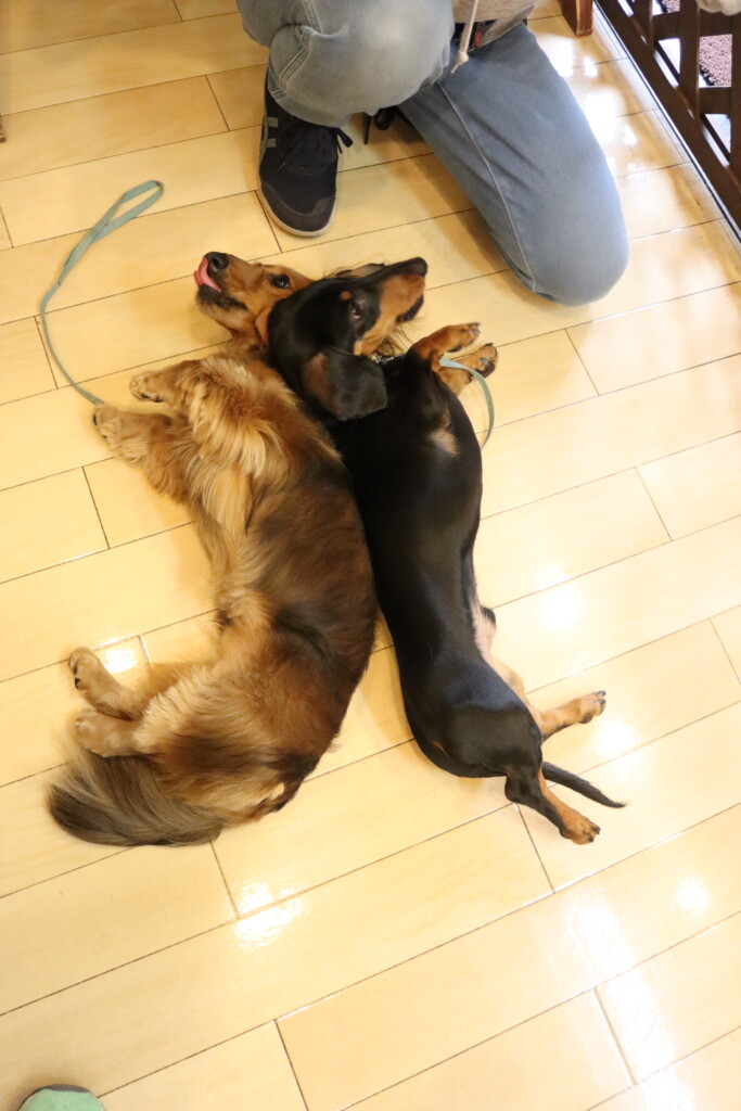 あずきちゃんとこむぎちゃんはだるまさんが転んだの練習もしています!