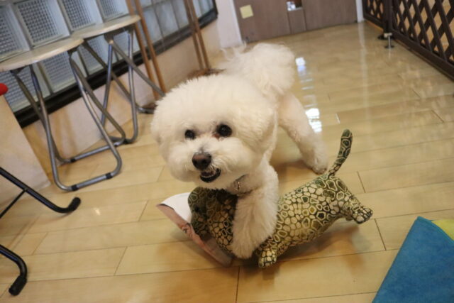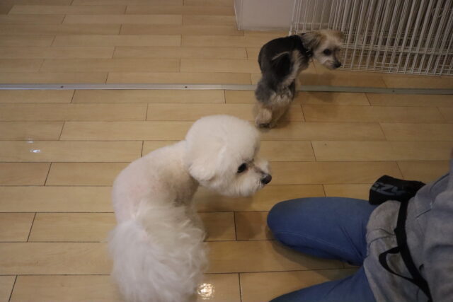 最近は少しずつ犬に慣れてきたのか近くにお友達がいても表情が豊かになってきたね♪