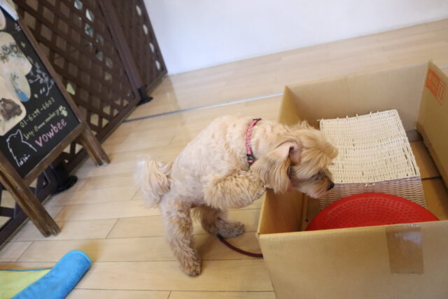 途中、大きなダンボールが気になる様子の茶々ちゃん!