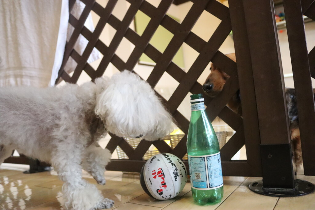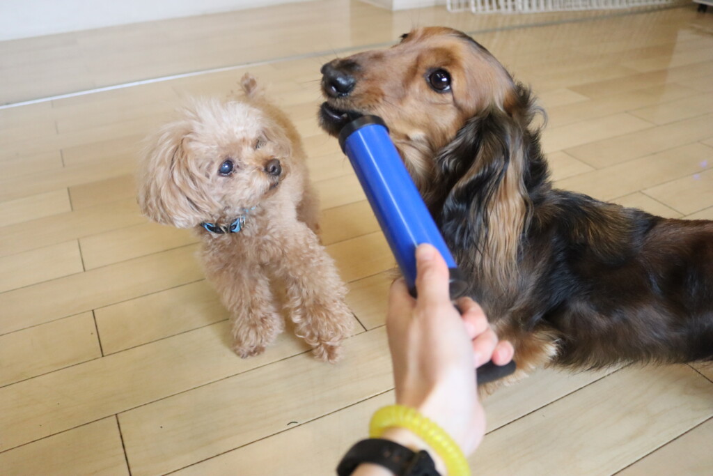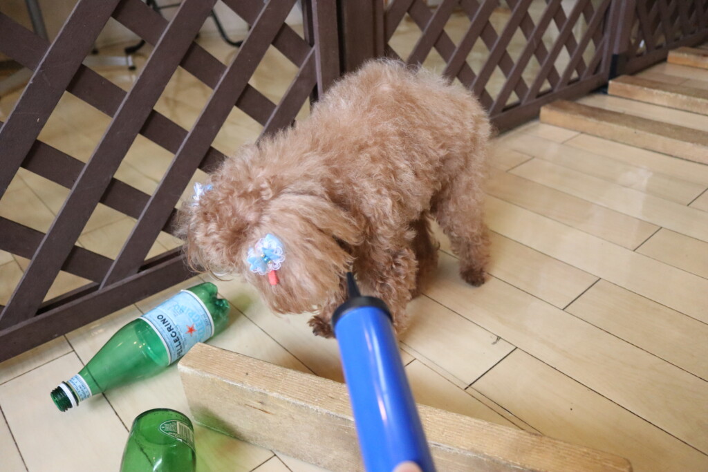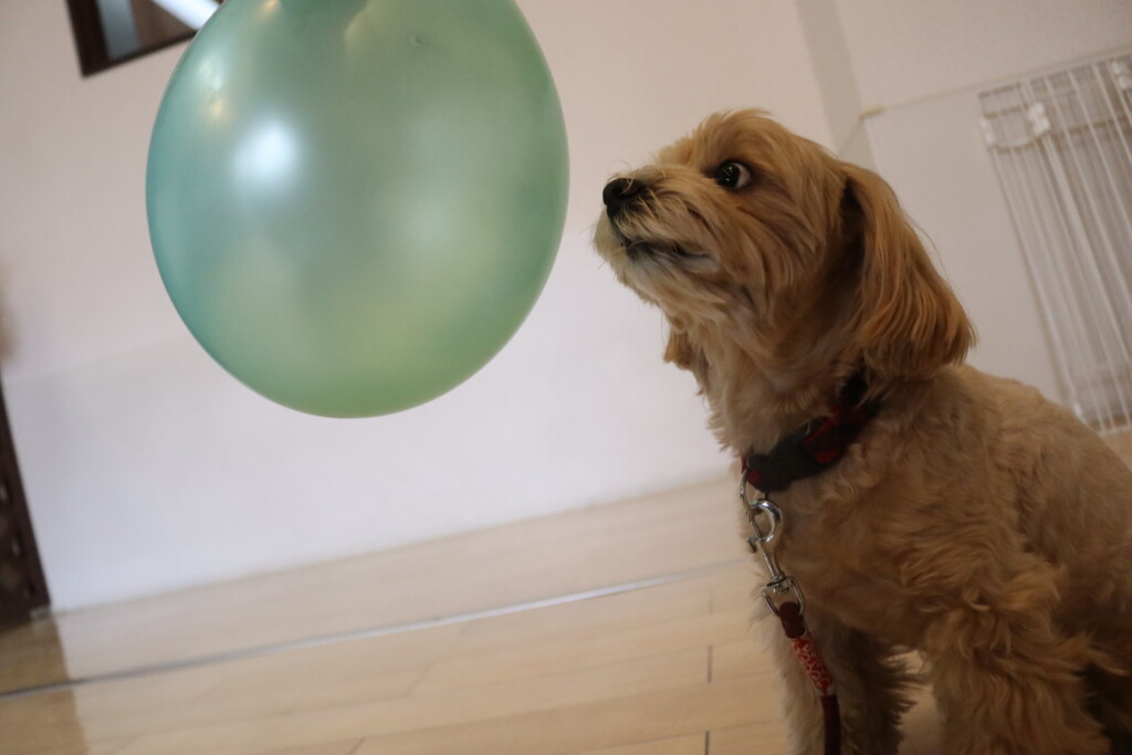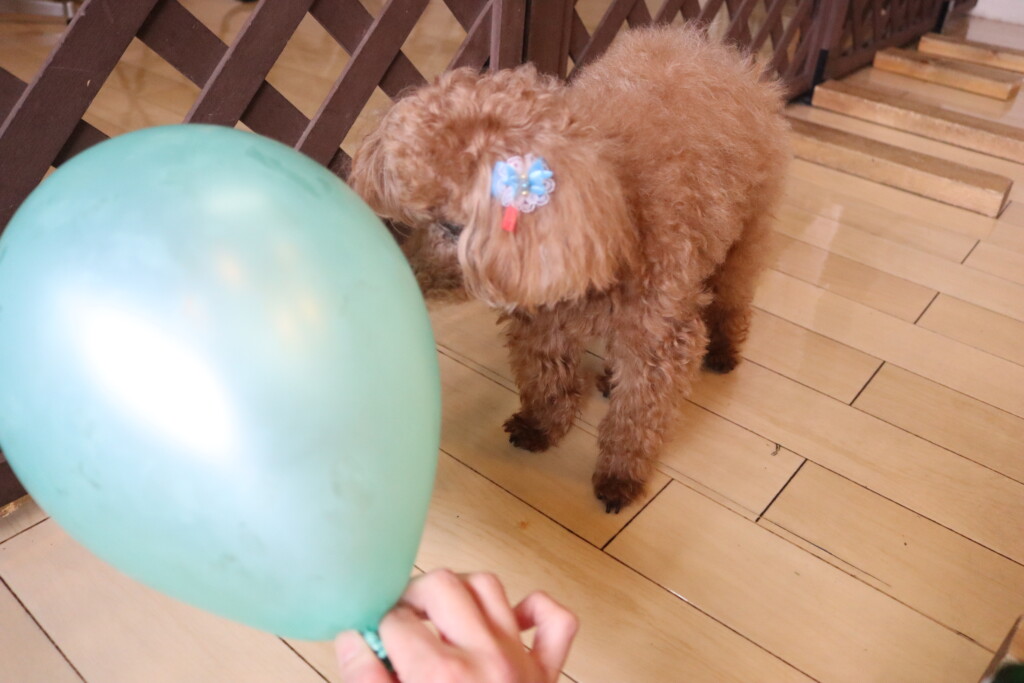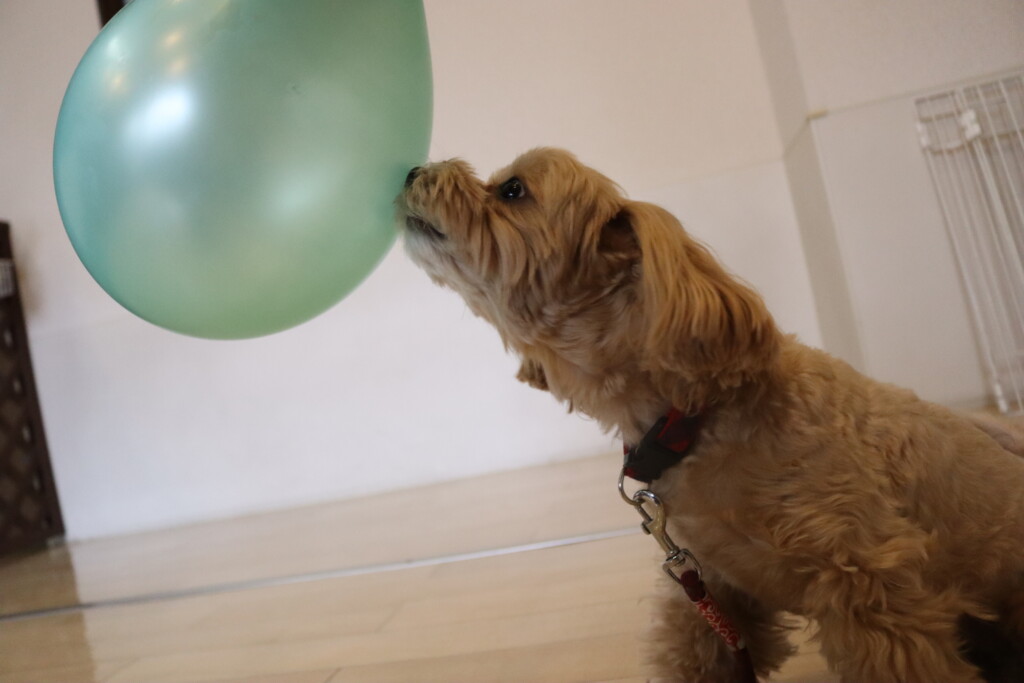 小春ちゃんとマロンくんは風船の空気入れを使い物慣れ!