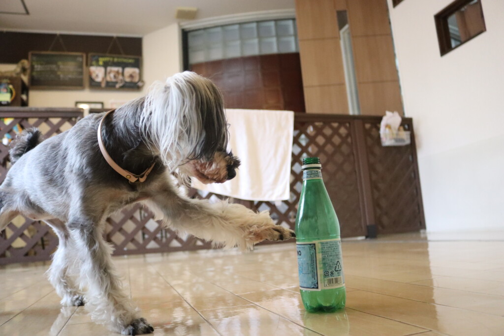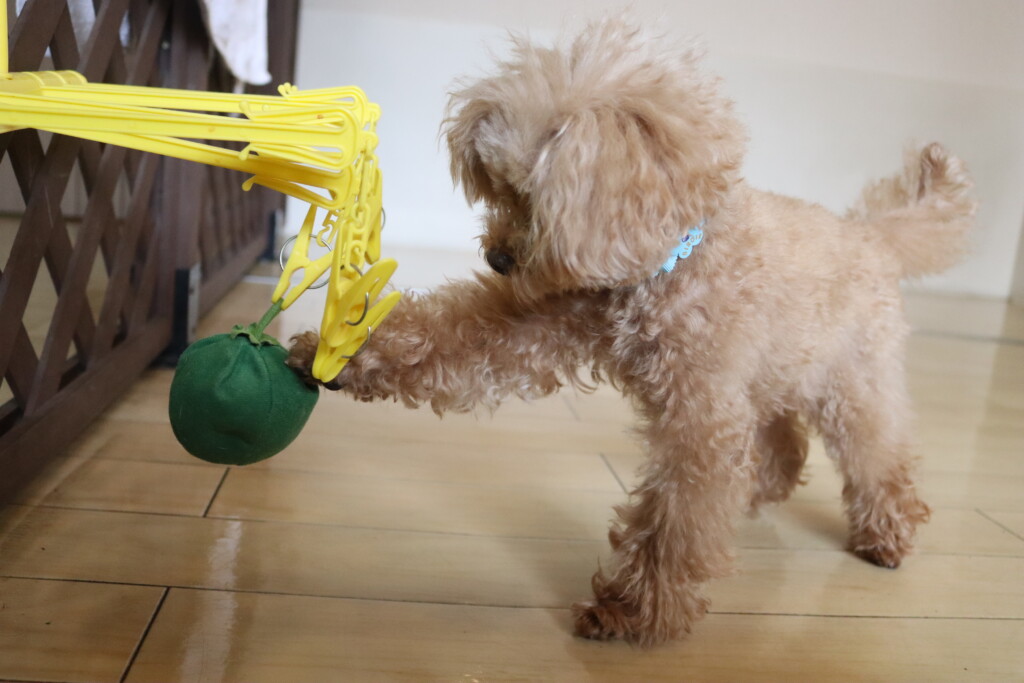 初挑戦の金ちゃんはチョンチョンと前足でオモチャを回収!