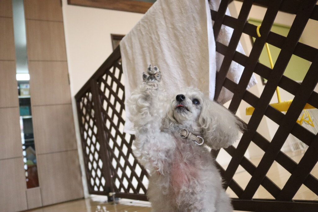 今日の保育園生は、シルヴィーちゃん、マロンくん、小春ちゃん、らんくん、こむぎちゃん、あずきちゃん、茶々ちゃん、金ちゃんです!