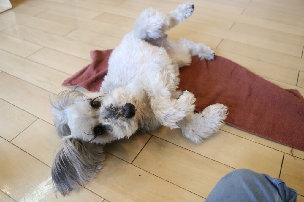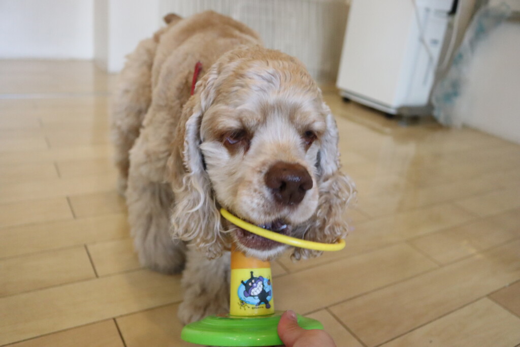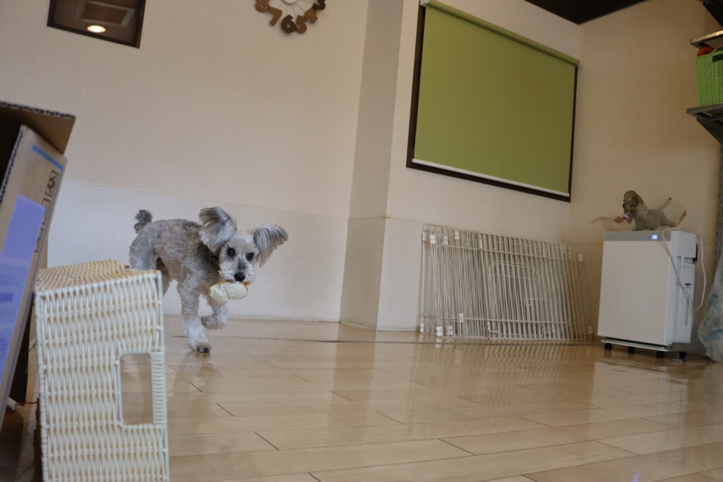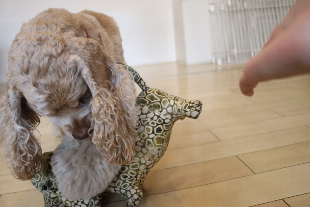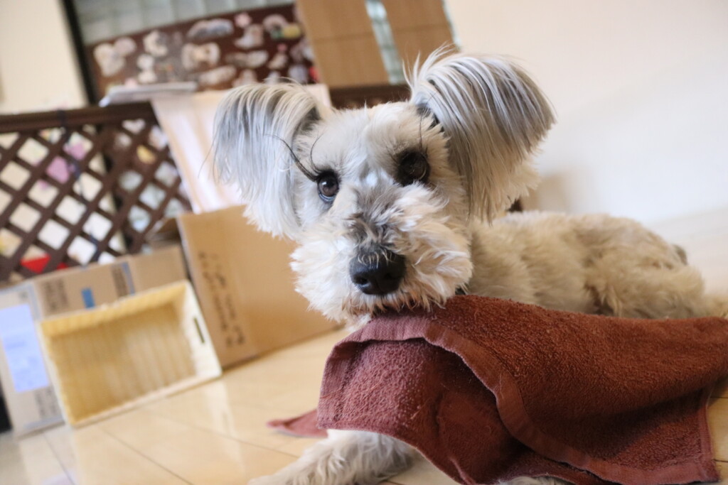 タオルを難なく咥えるショパンくん!センスがありそうです!