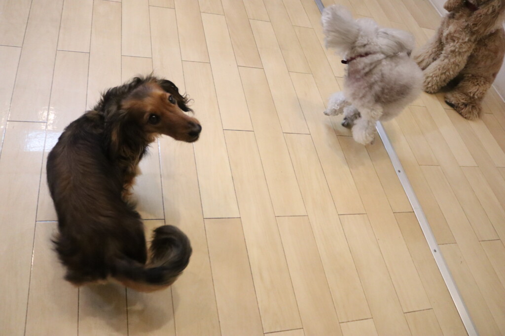今日の保育園生は、小春ちゃん、シルヴィーちゃん、マロンくん、テトラくん、ショパンくん、そしてDayお預かりでらんくんが遊びに来てくれました♪