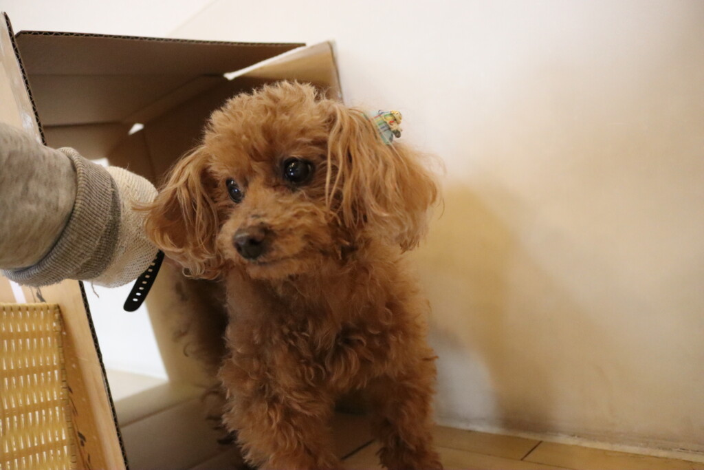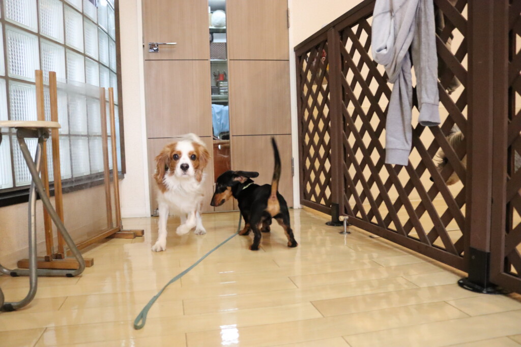 ガラガラっと大きな音が鳴ると耳が真後ろに引き気になる様子の小春ちゃん…
