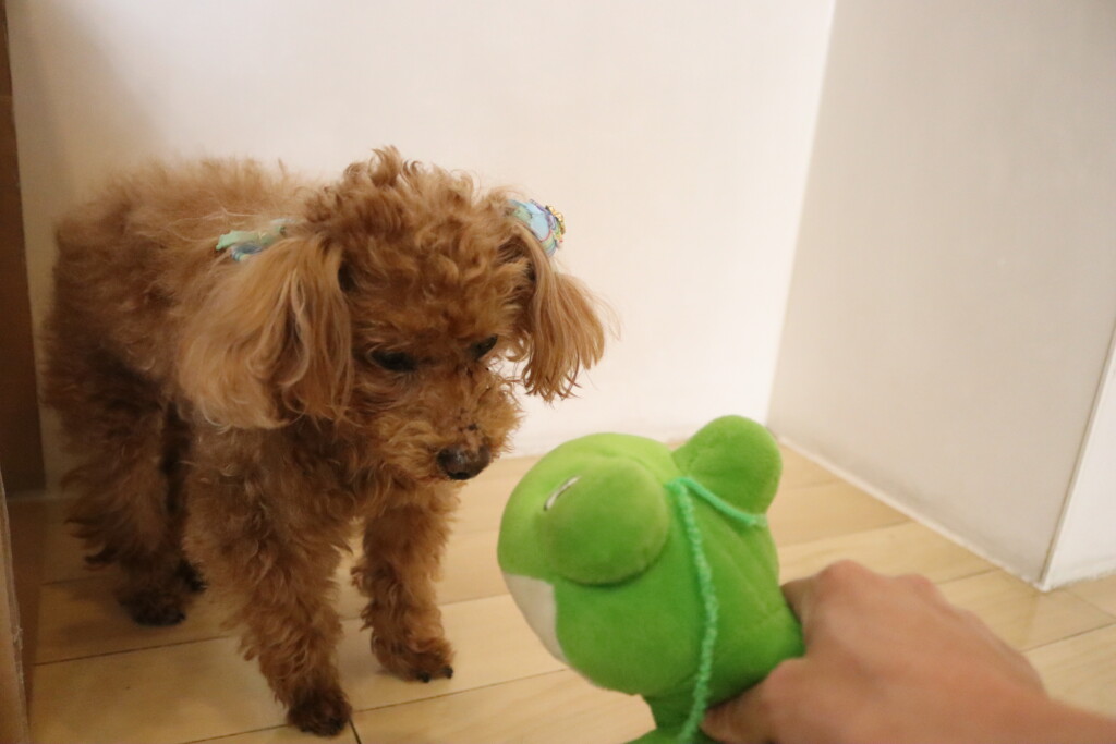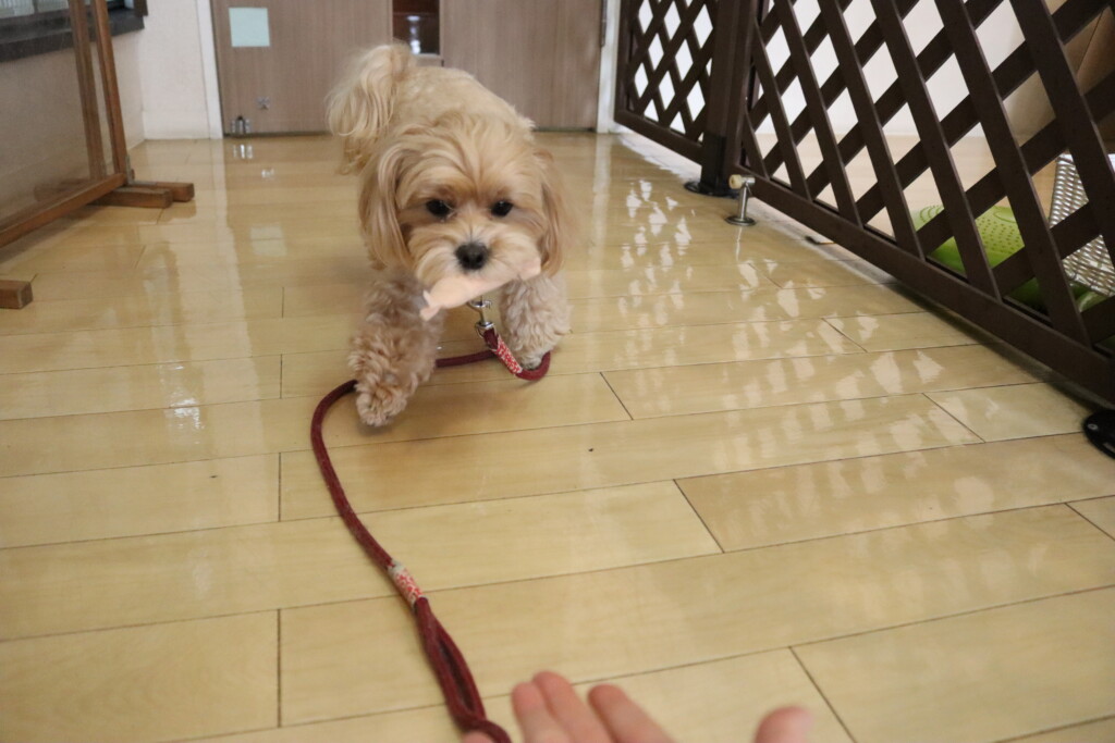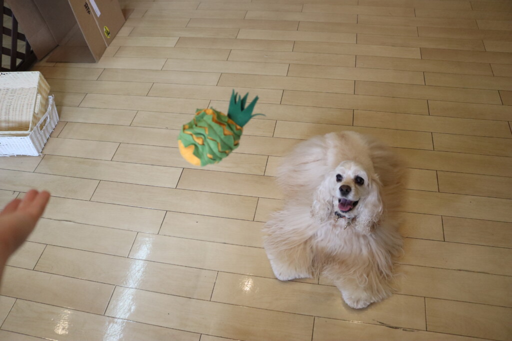オモチャをポーンと投げると口を広げ咥えそうになりましたが、何とか我慢することが出来たね⭐