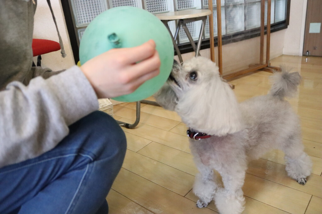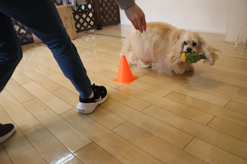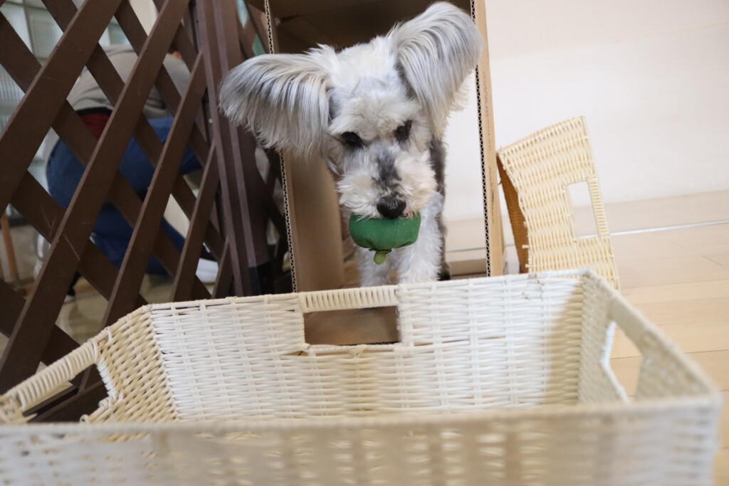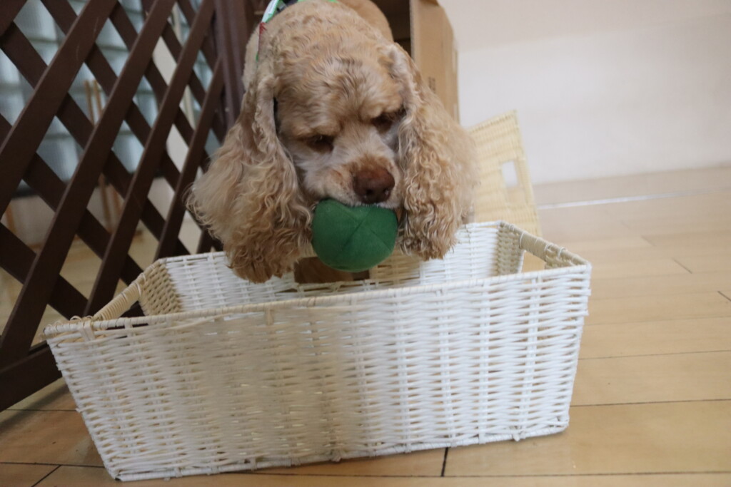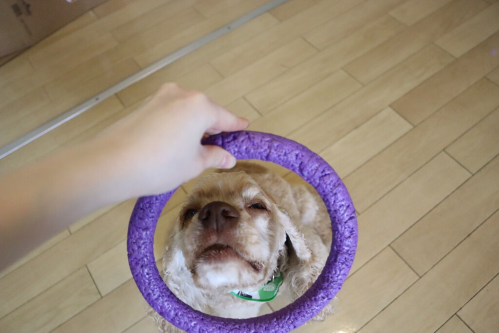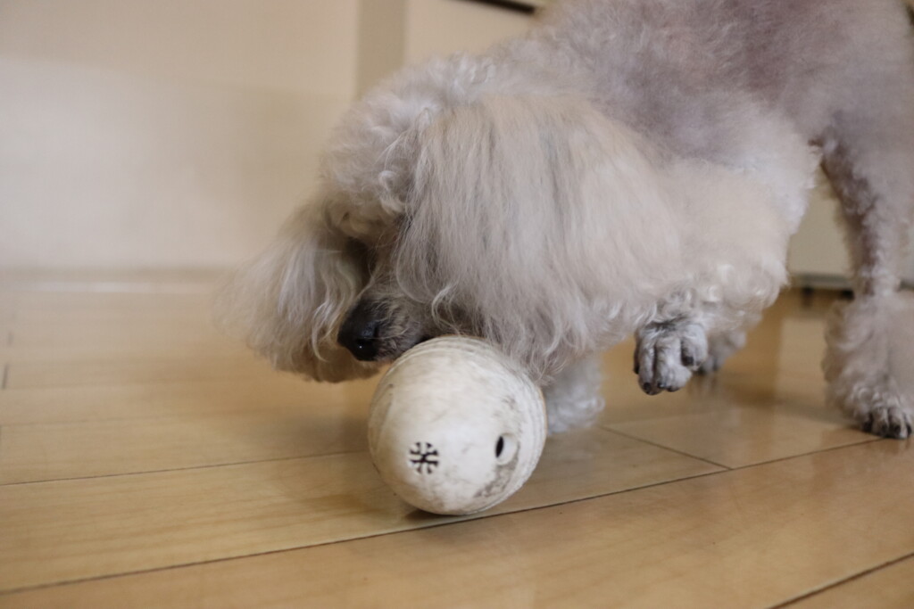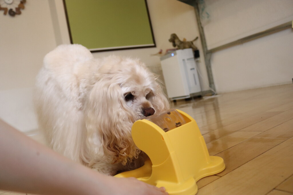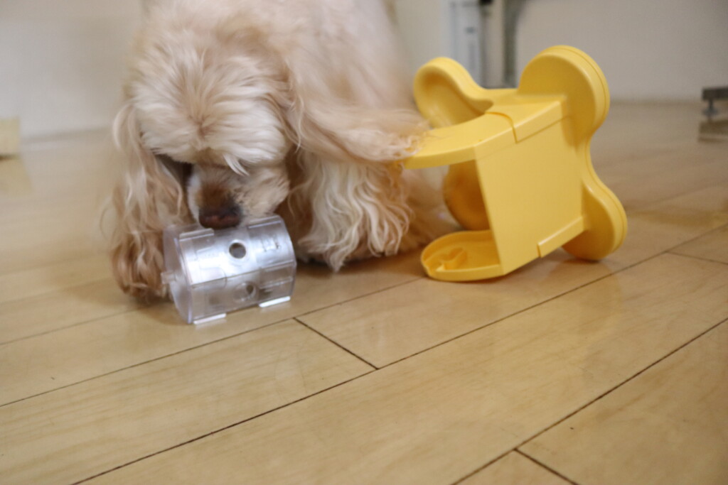ベルちゃんはお気に入りの知育玩具を使って鼻を使ったトレーニング!