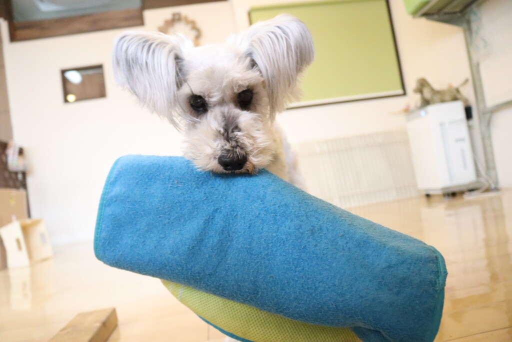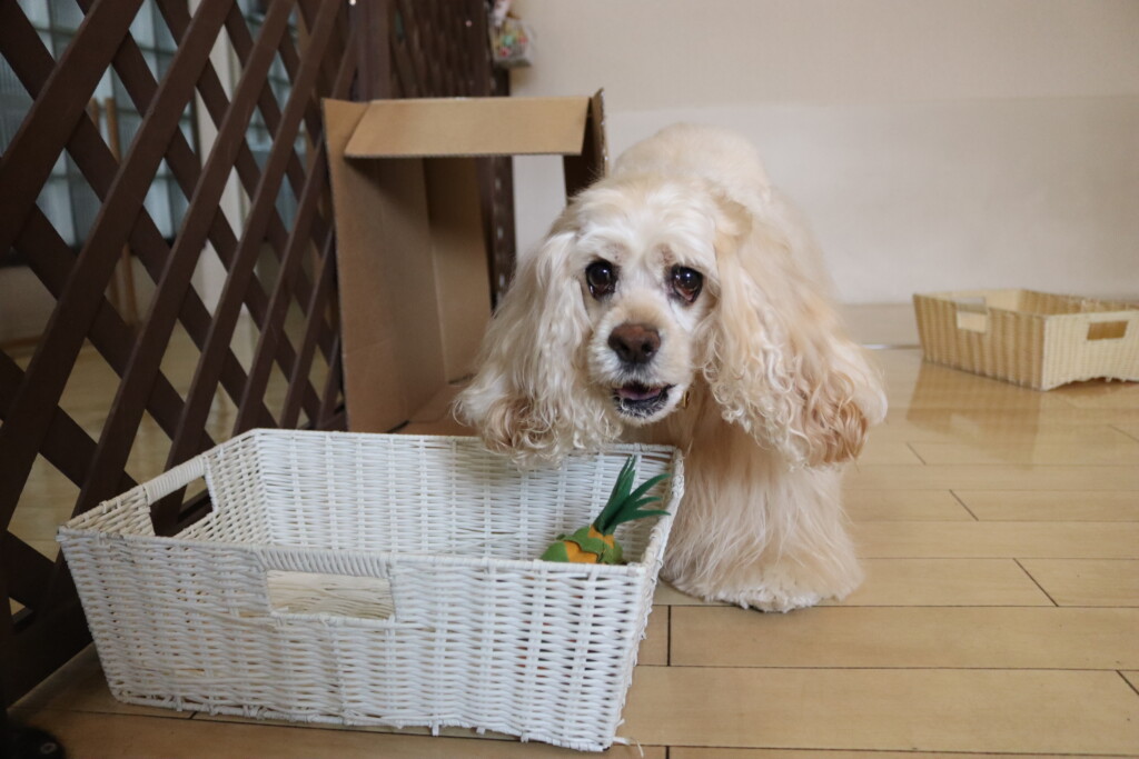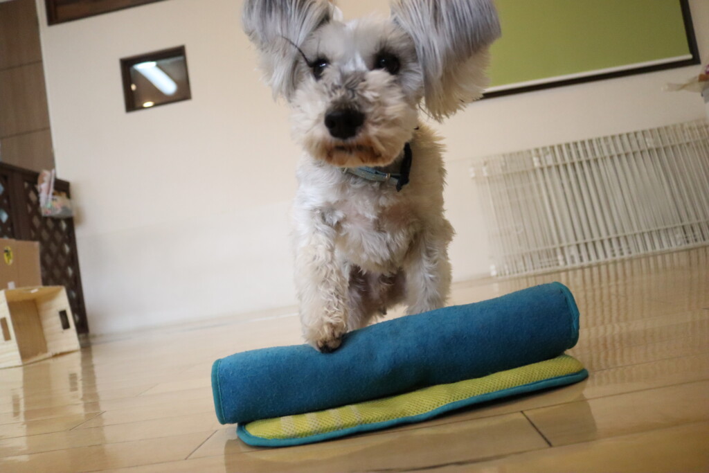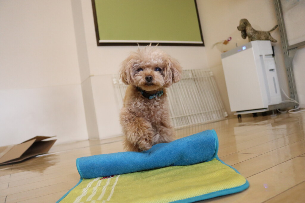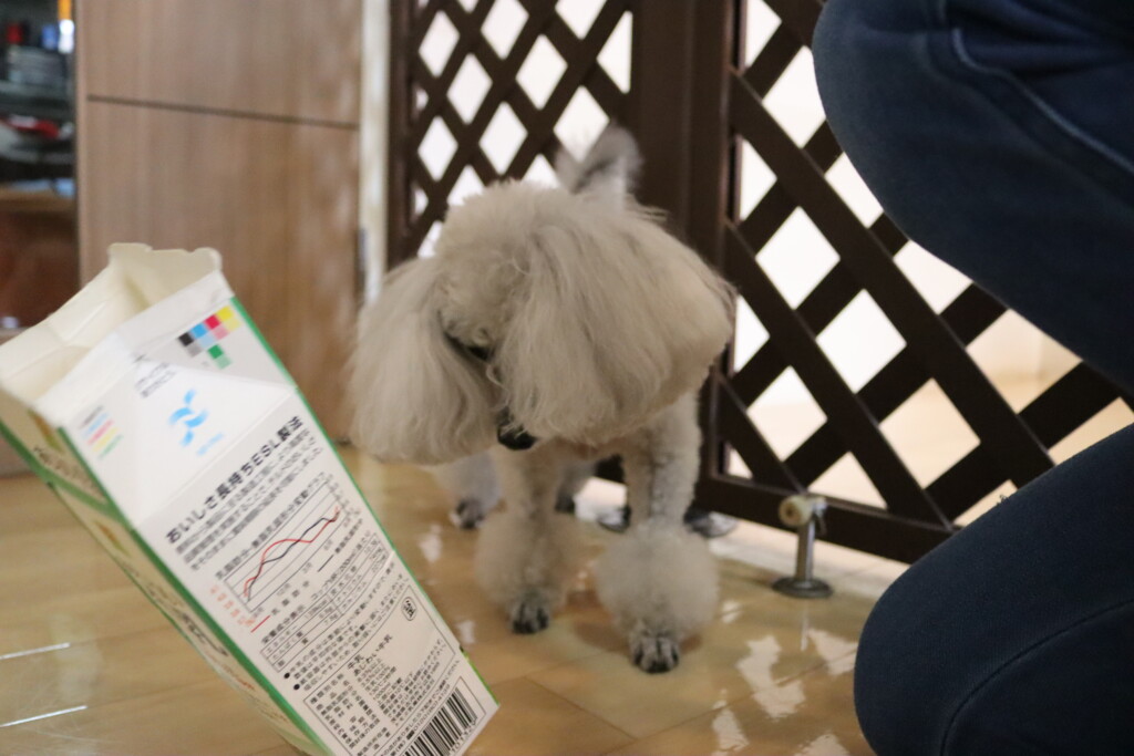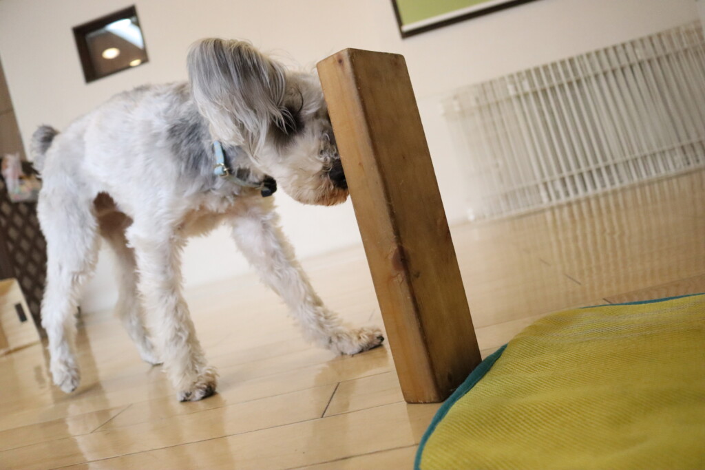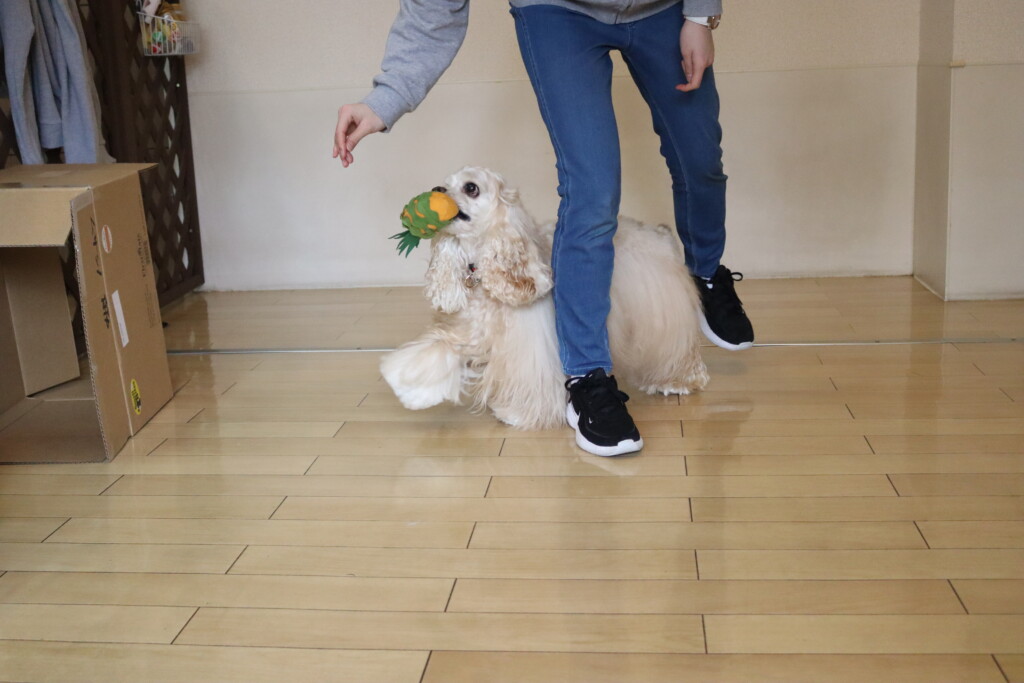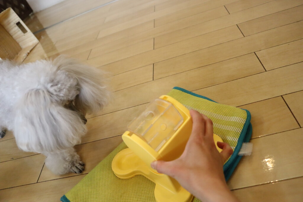 ベルちゃんはお気に入りの知育玩具を使って鼻を使ったトレーニング!