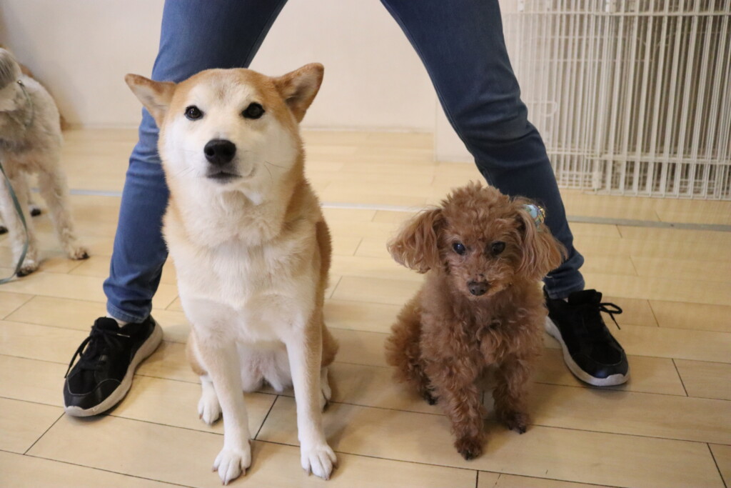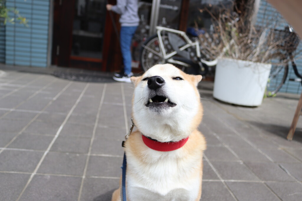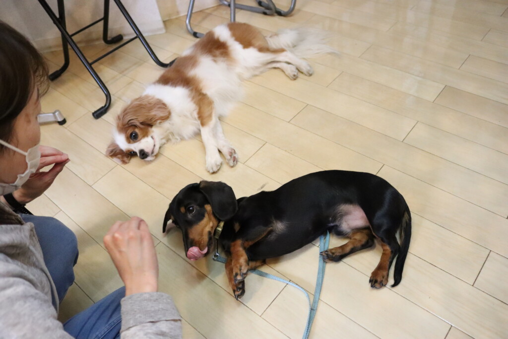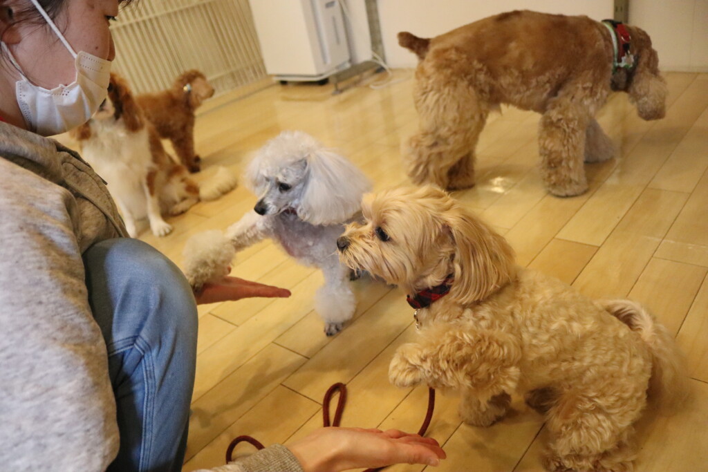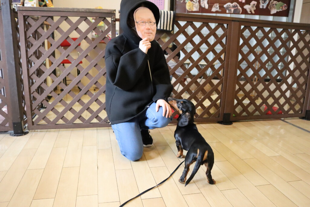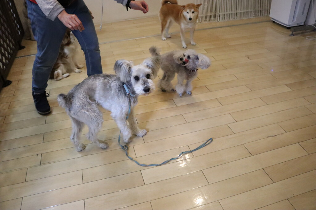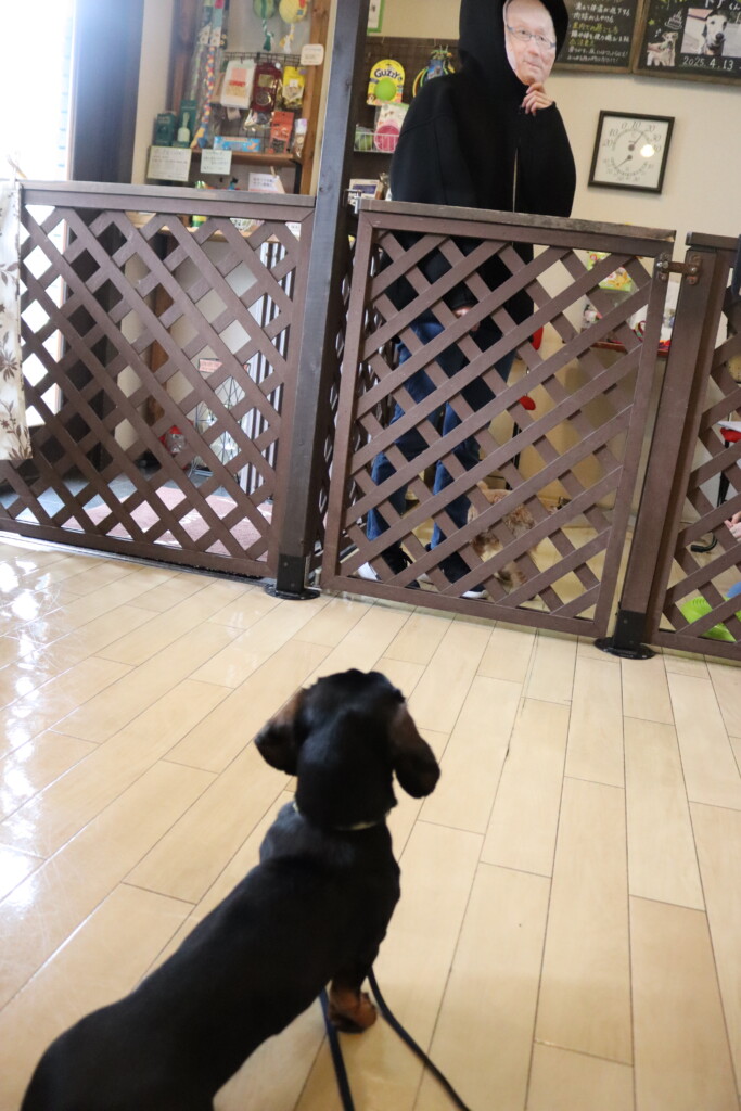 お面を着用したスタッフが現れるとジーっと見つめワンワンと吠えてしまうこともありましたが、匂いを嗅いでチェック!