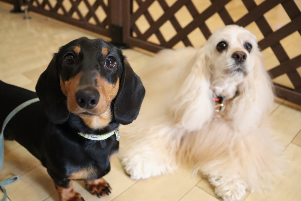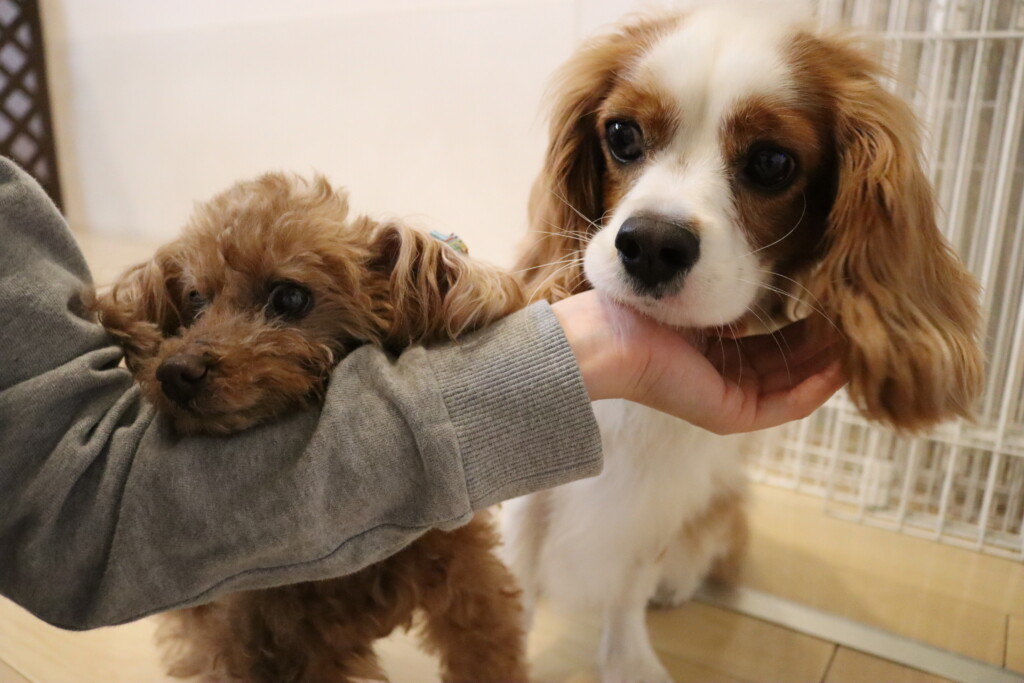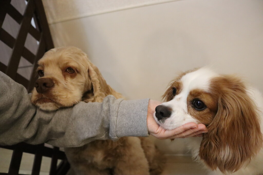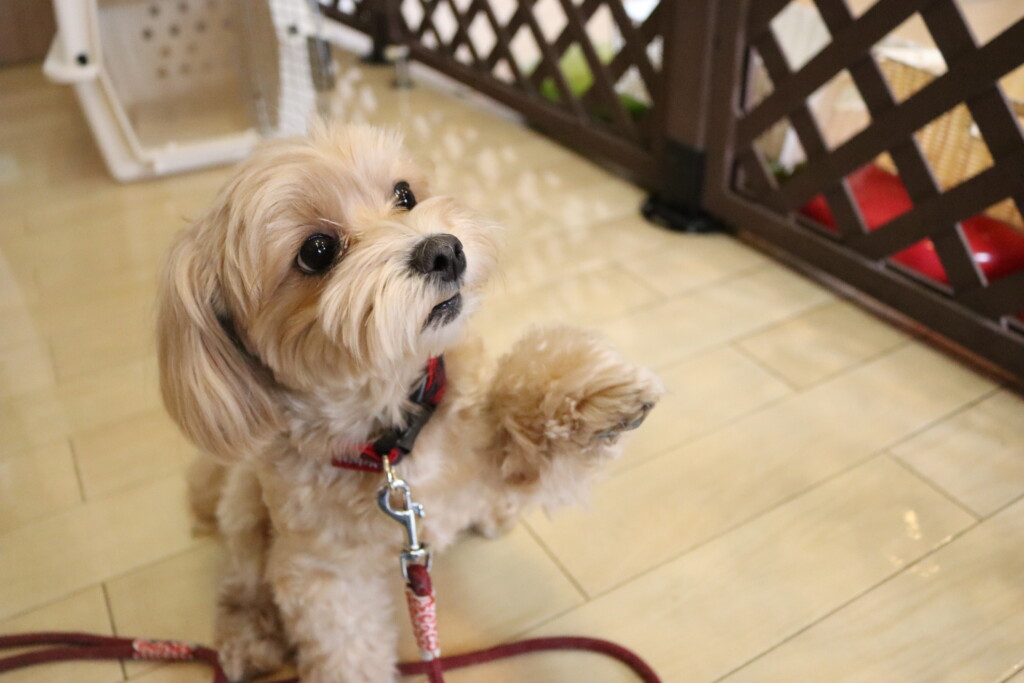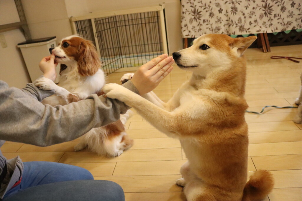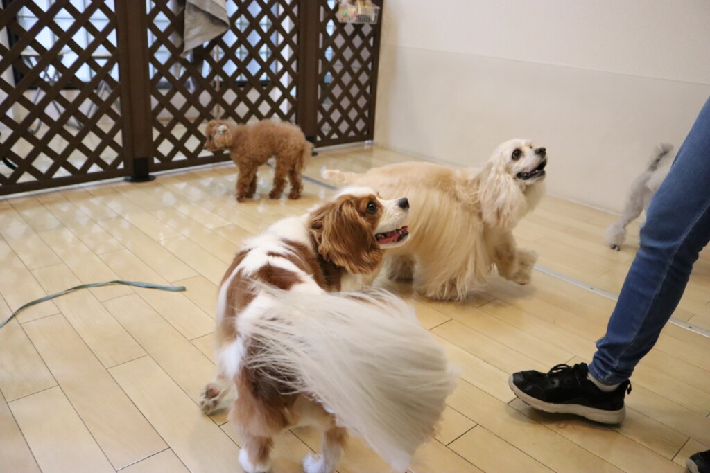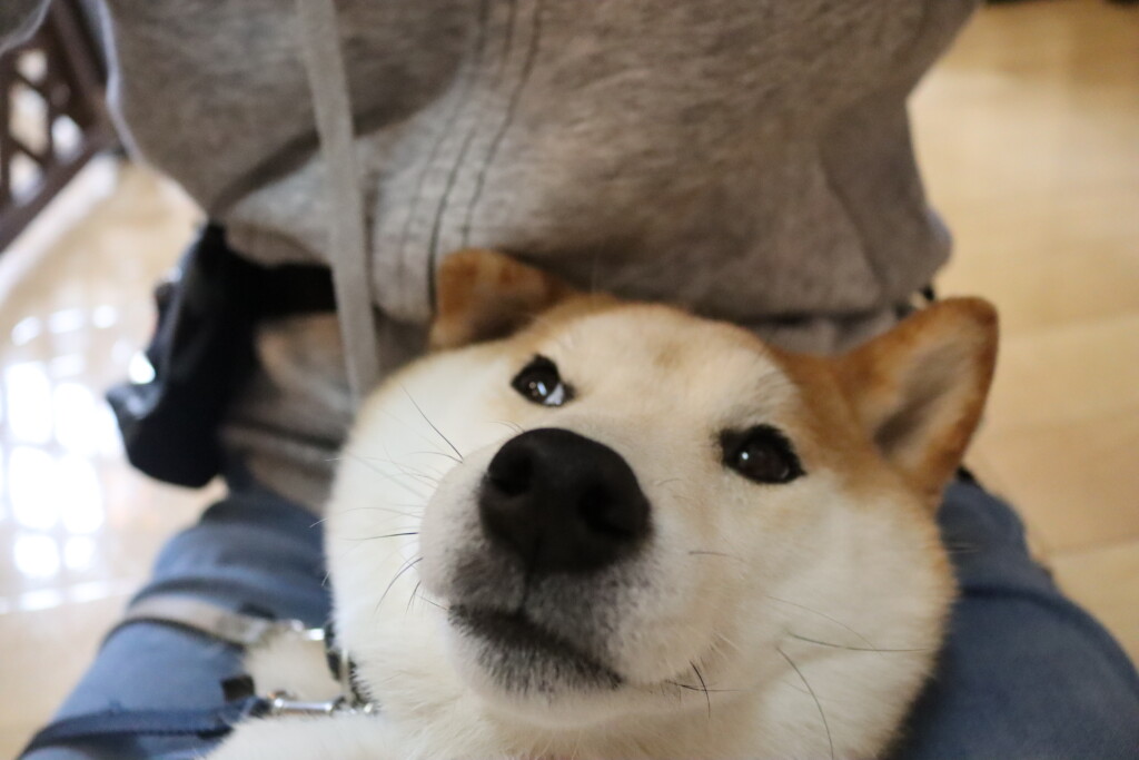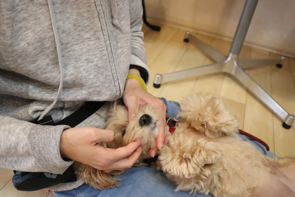 お面を着用したスタッフが現れるとジーっと見つめワンワンと吠えてしまうこともありましたが、匂いを嗅いでチェック!