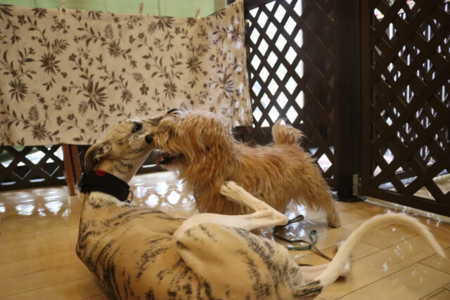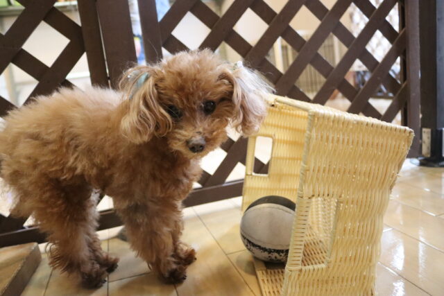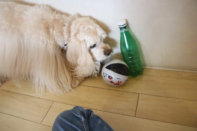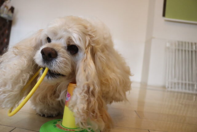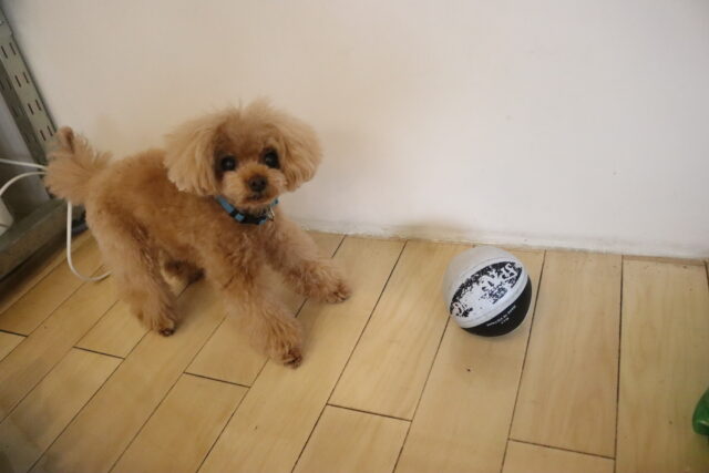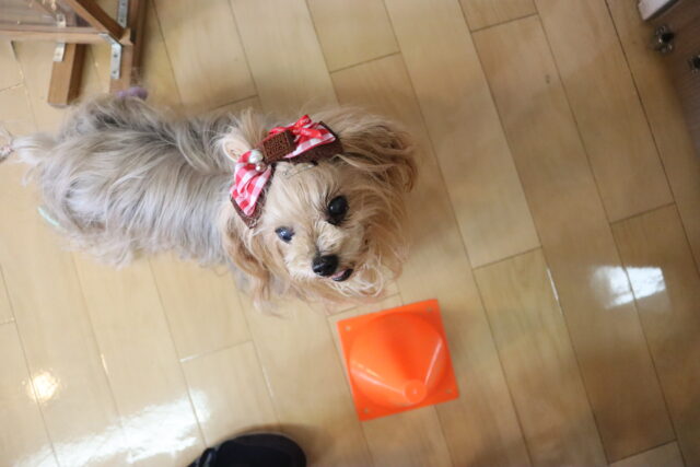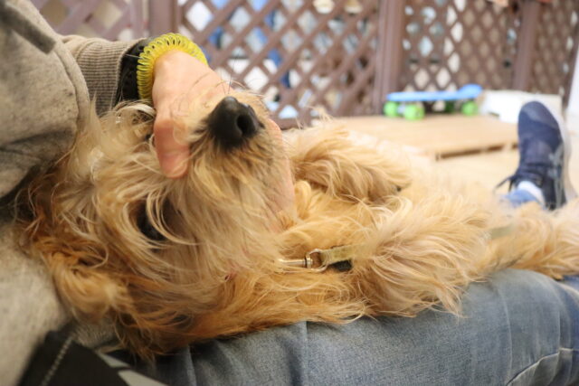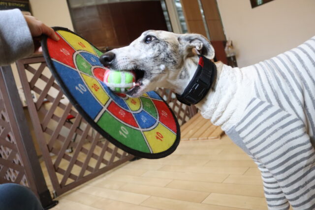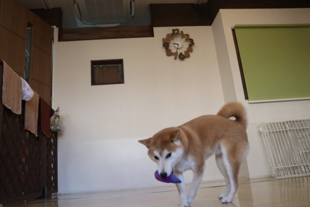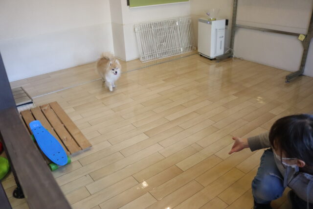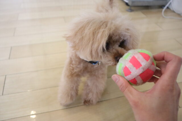 小春ちゃんは持参のオモチャを使いレトリーブ練習もしています!