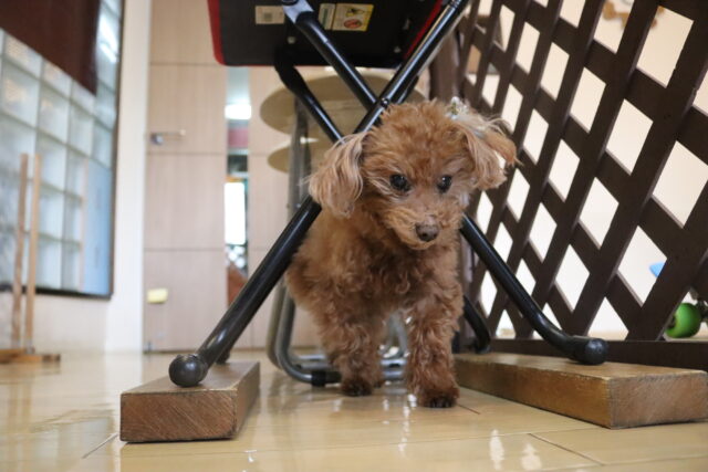 イスくぐりでは様々な形のイスの下をトコトコと歩いてきてくれています♪
