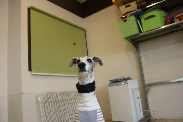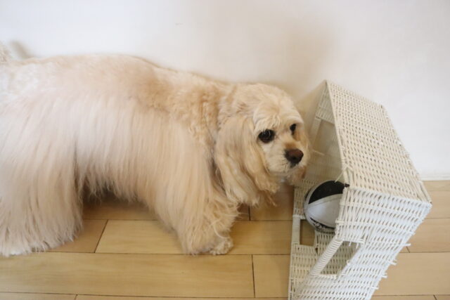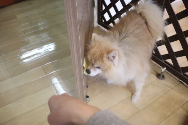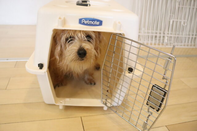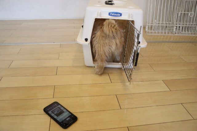 インターホンの音が鳴ったらクレートの中へ!
