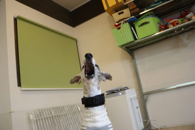 ダイナミックにボールを咥えて…