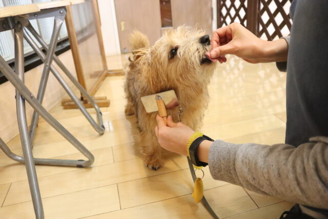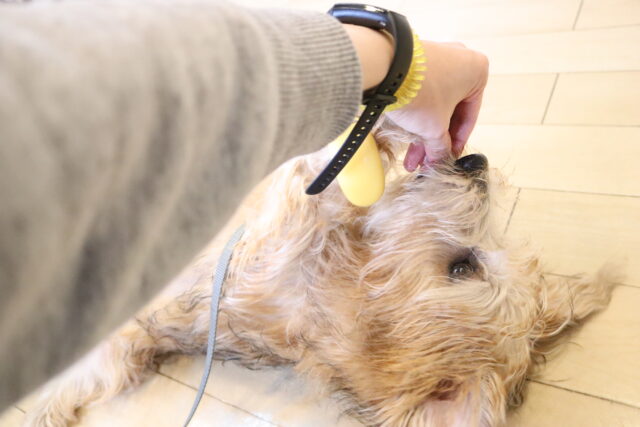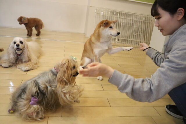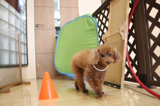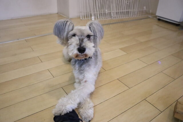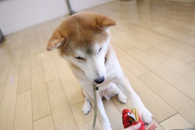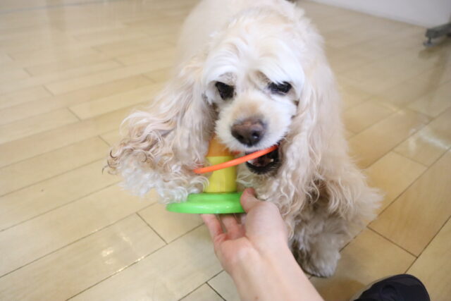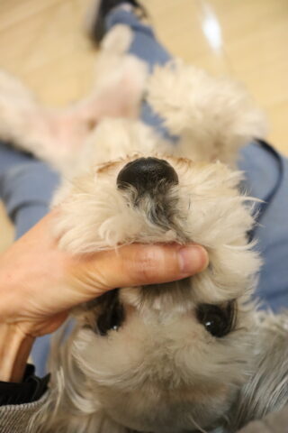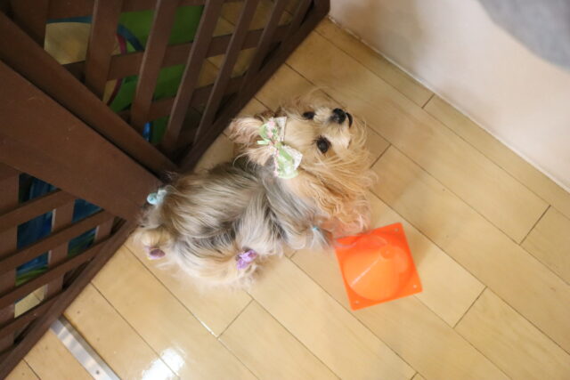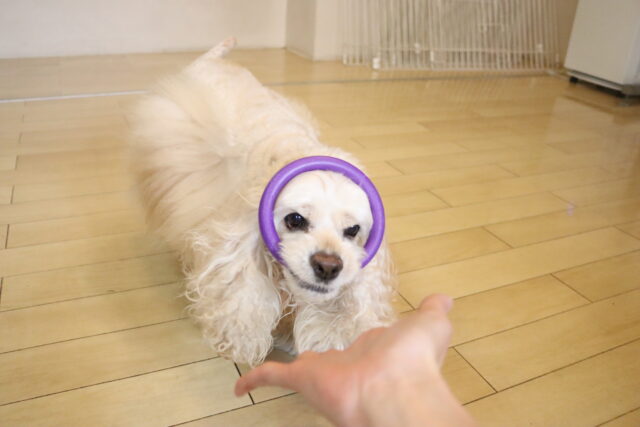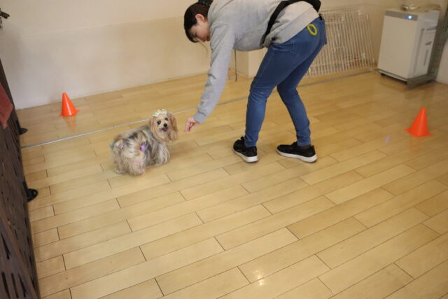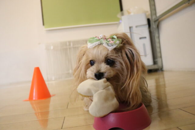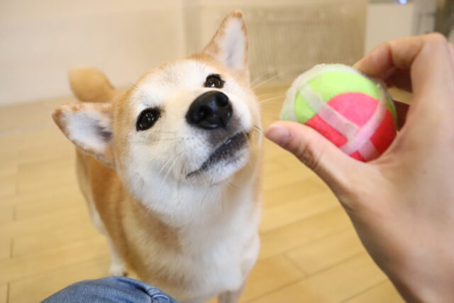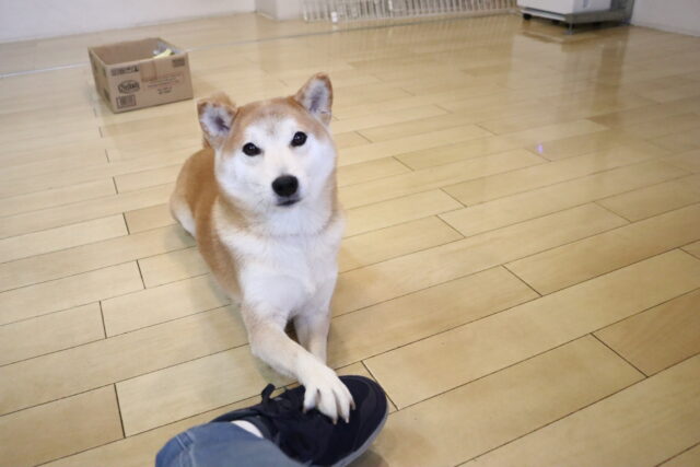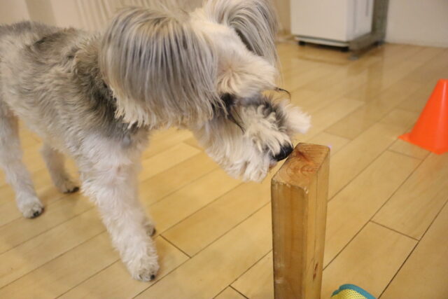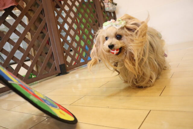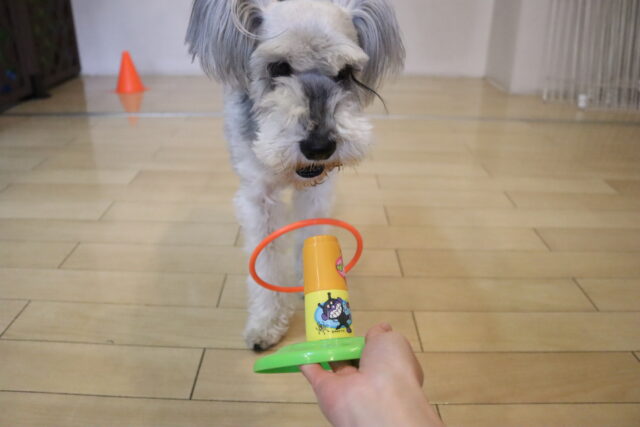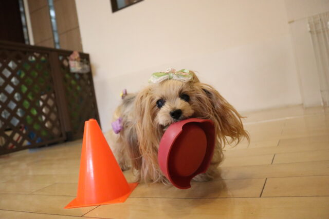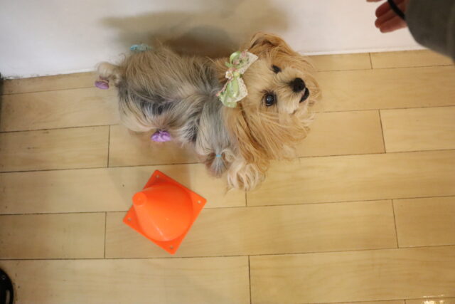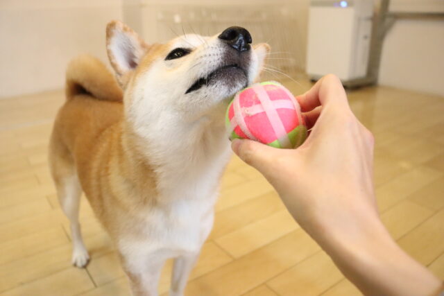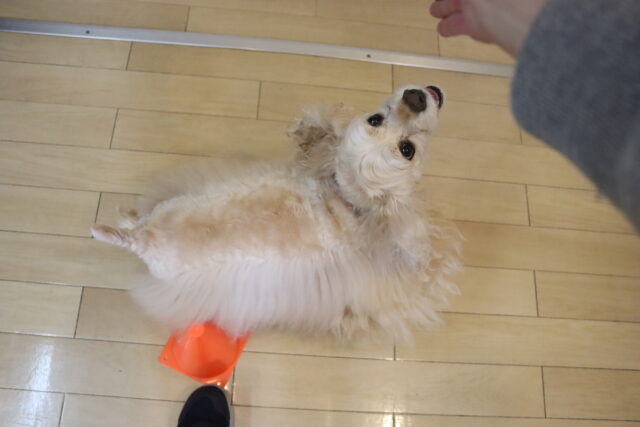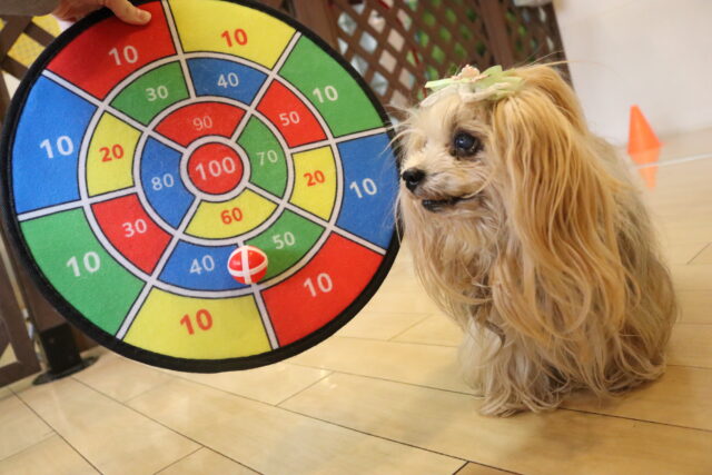 ダーツのボールタッチ練習ではボールに貼られているテープ部分が苦手なようで、ボールをタッチしている風の小春ちゃんをご覧ください(笑)