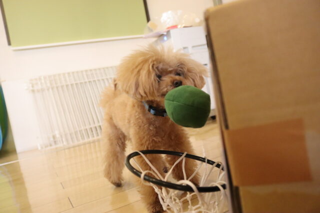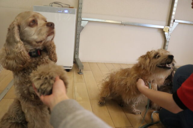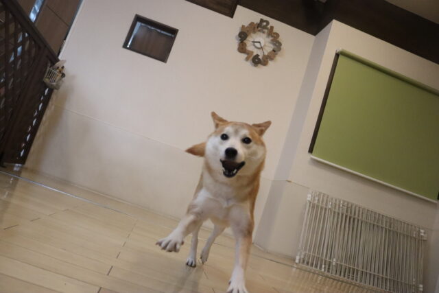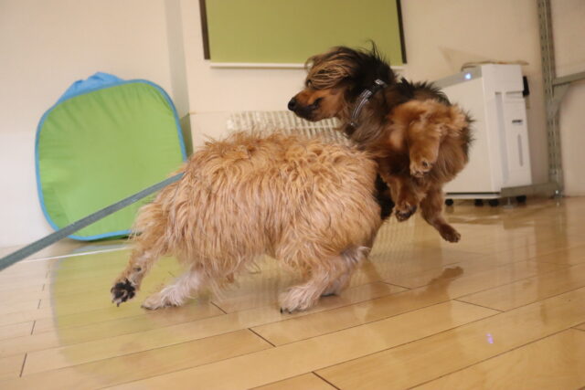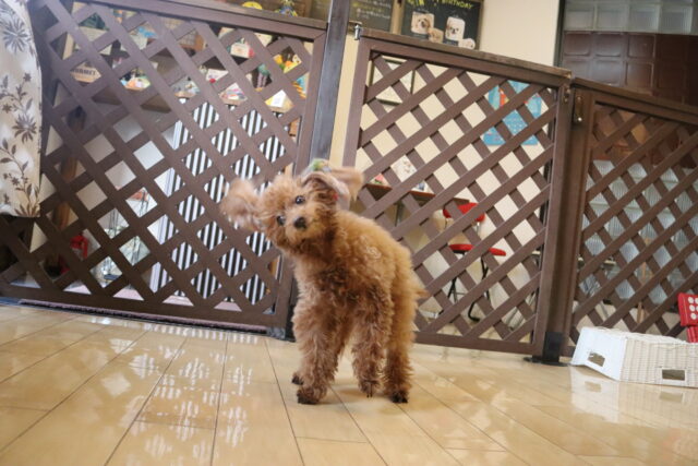 気合いのブルブル!その後はアスレチックやトリックをして楽しんでいます♪