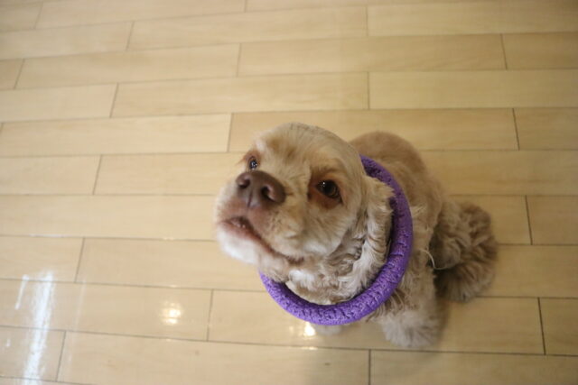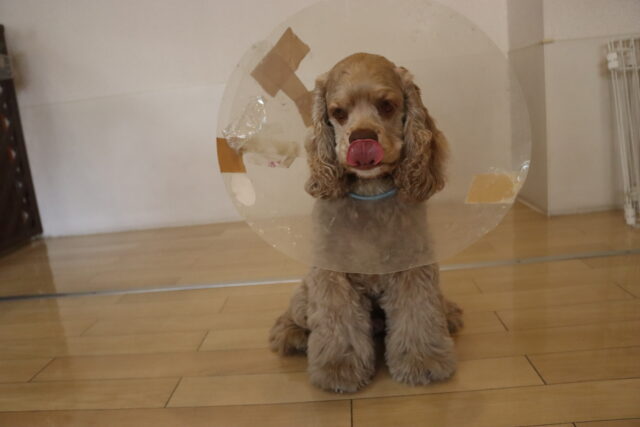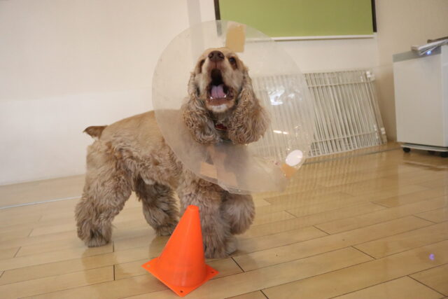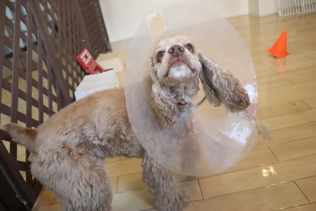 エリザベスカラーを着用をすると少し気分が下がっていましたが…