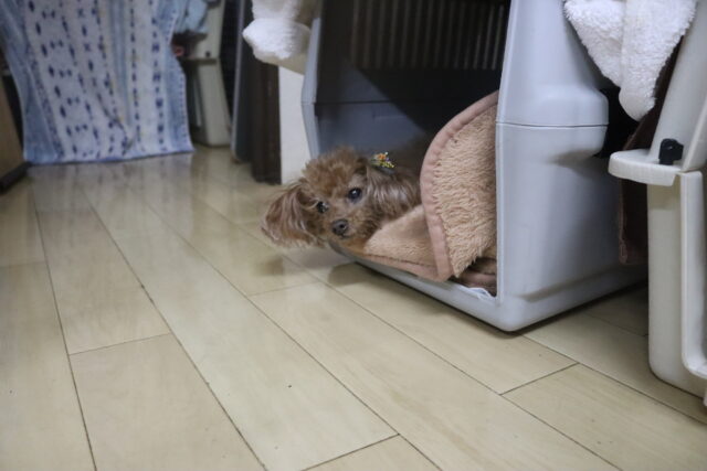 顔にも着用してみましたがこちらも無反応の小春ちゃんでした(笑)