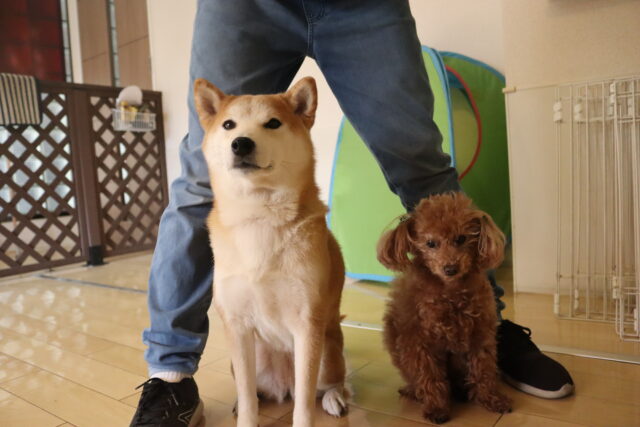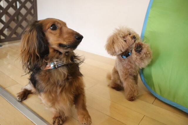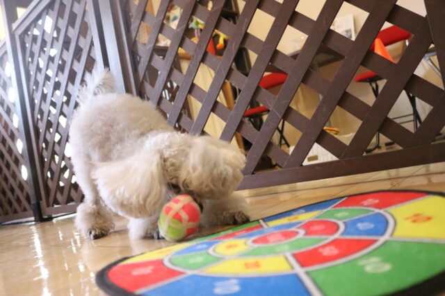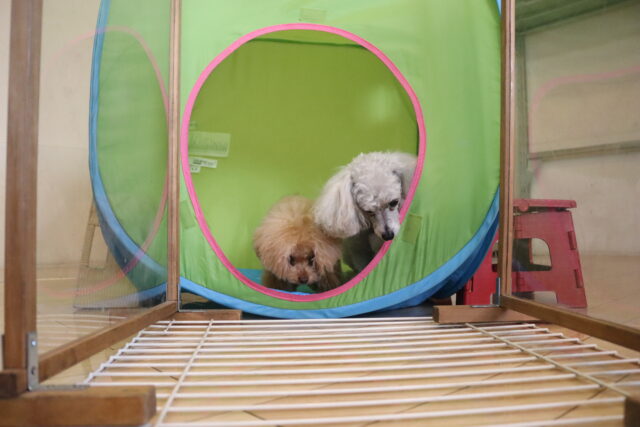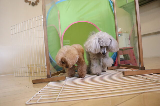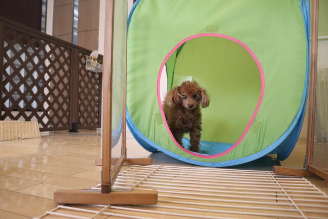 テントの中には仲良く入っていましたが、その先には苦手なサークルが💦