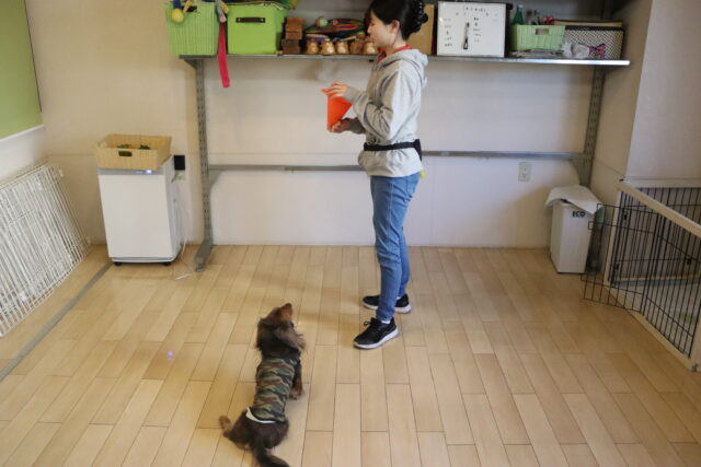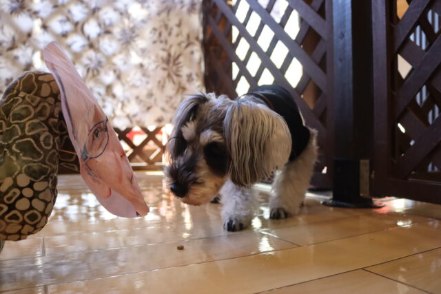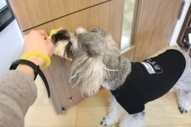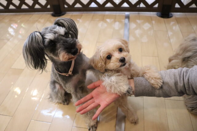 スタッフが棚の物を触っていると、我慢できず動いてしまうことが💦