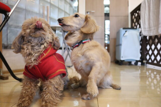 こむぎちゃんと金ちゃんも一緒にトレーニング!
