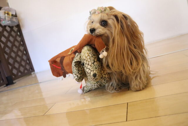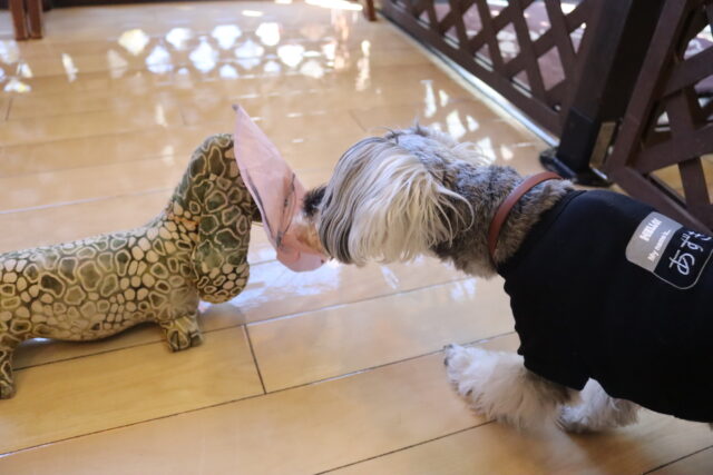 あずきちゃんは見知らぬ男性のお面を被った人形で物慣れ🌟