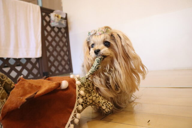 「はい、出来たわよ~」となぜか尻尾を咥えるりれらちゃんでした🤭
