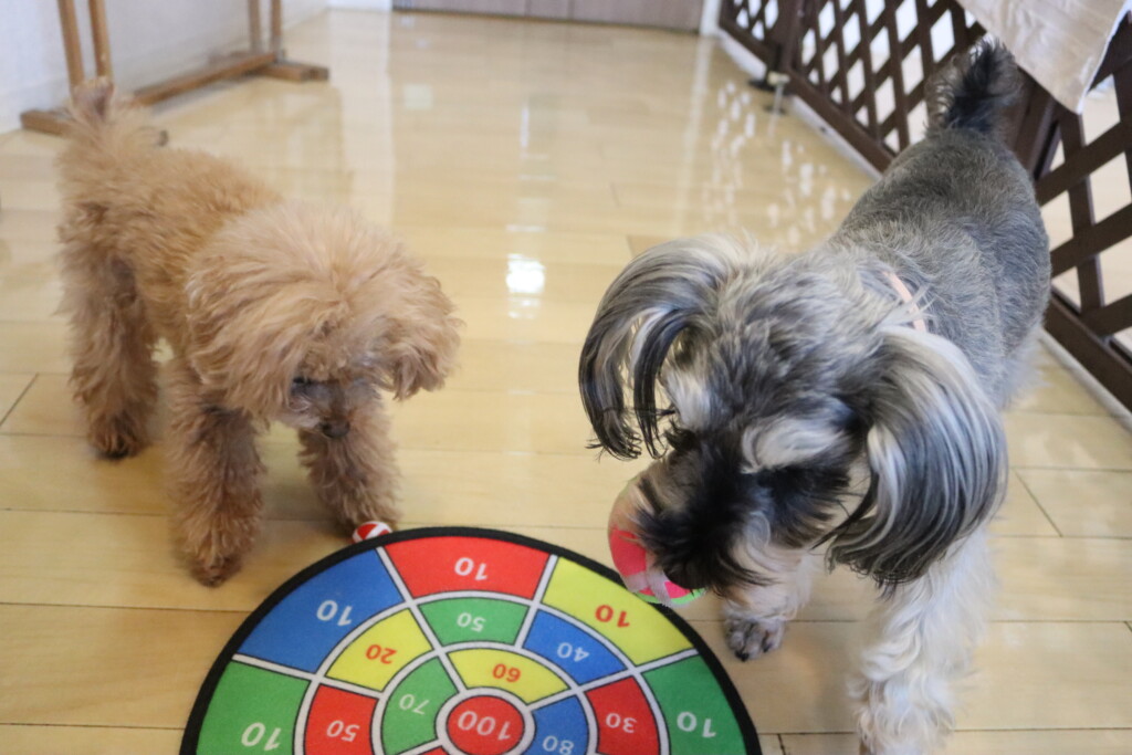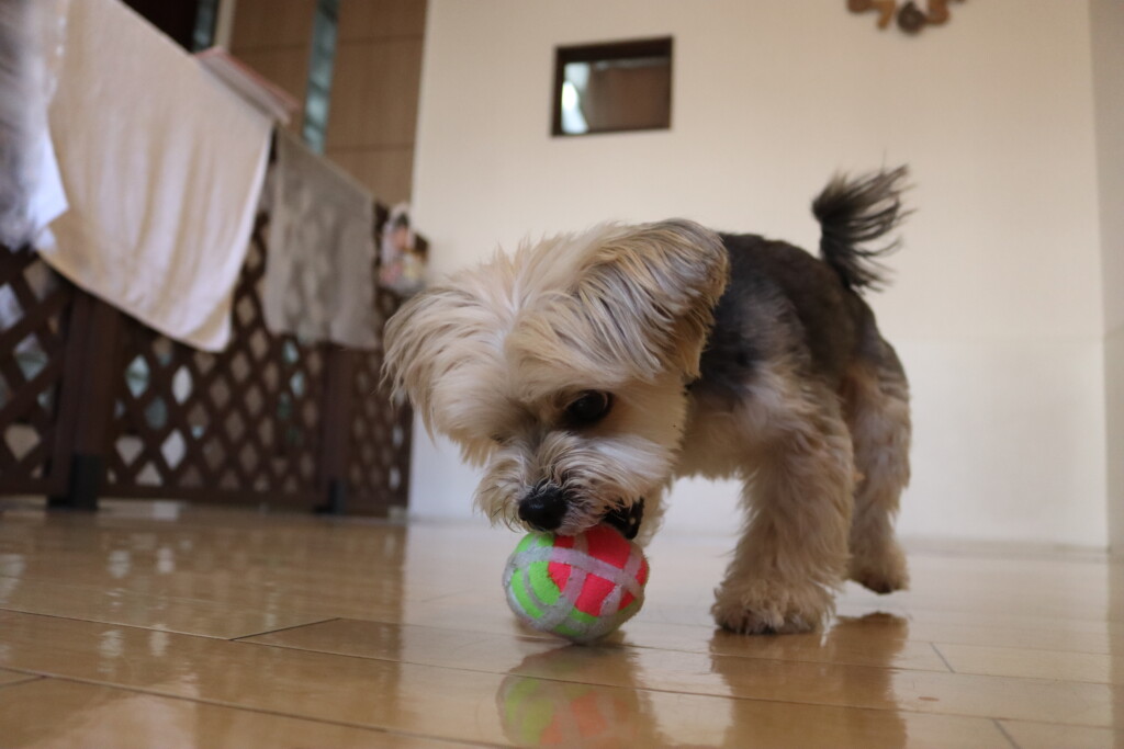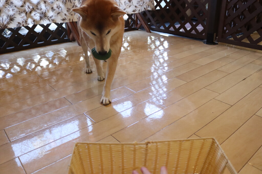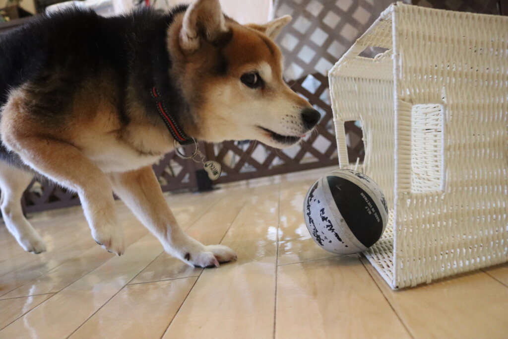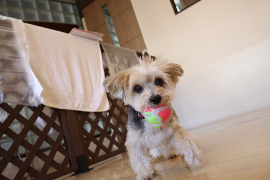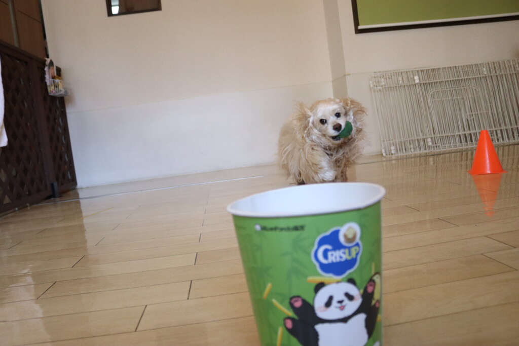 むぎくんはダーツのボールを使いレトリーブ練習もしています!