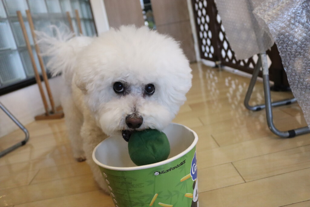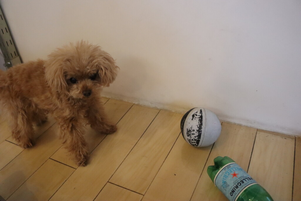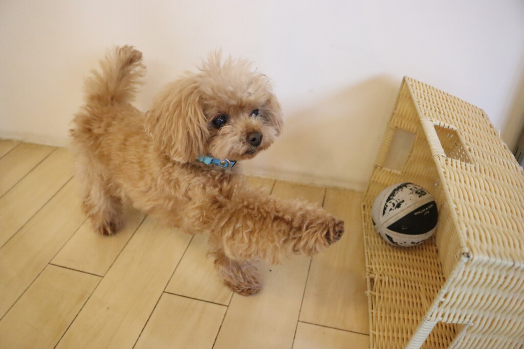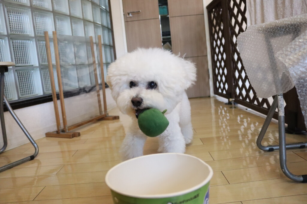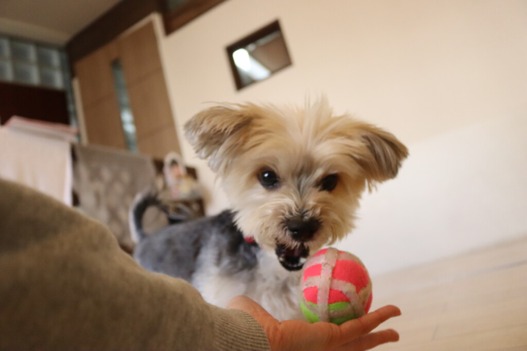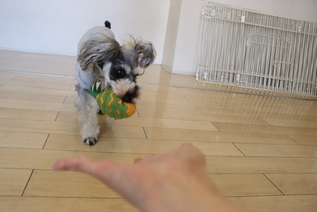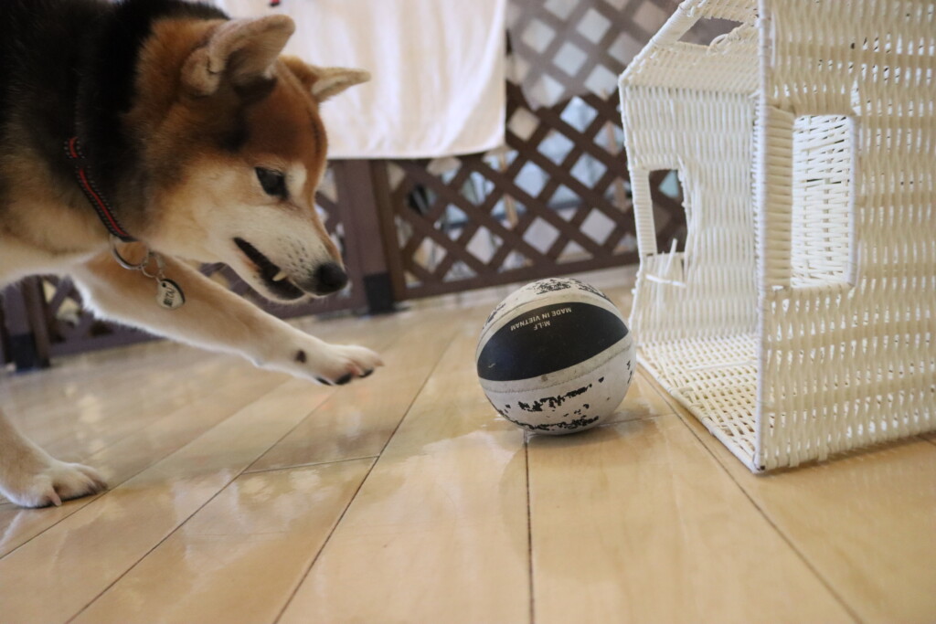 むぎくんはダーツのボールを使いレトリーブ練習もしています!