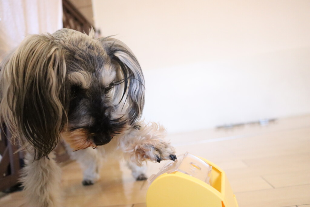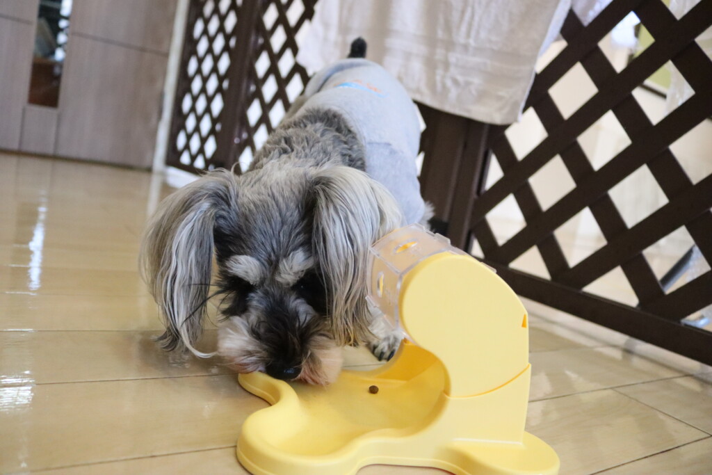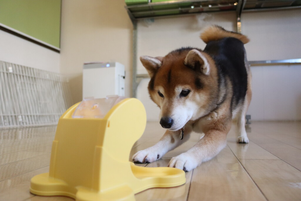 見慣れない物に少し警戒をしながらも試行錯誤をしながらフードをGETしています☺