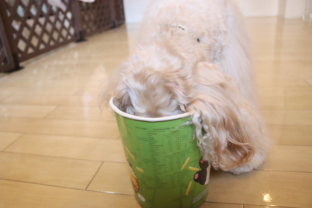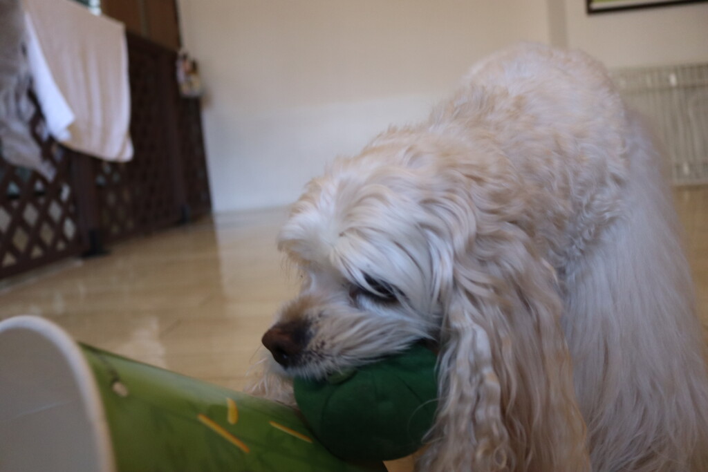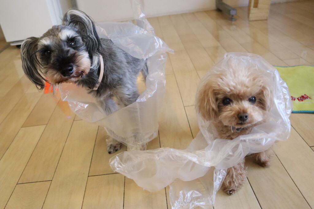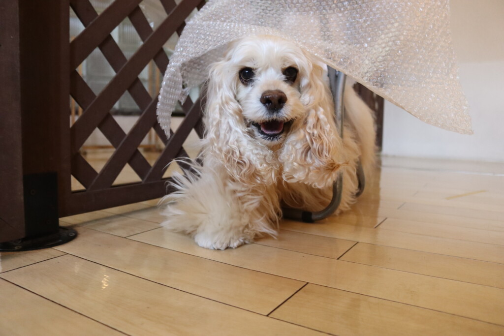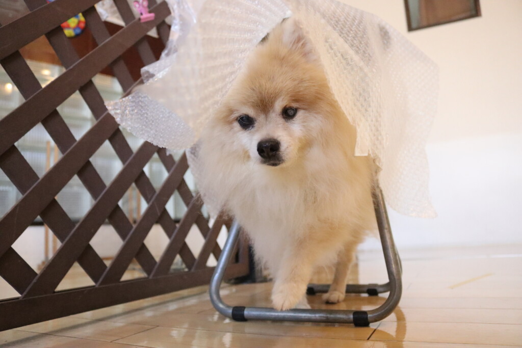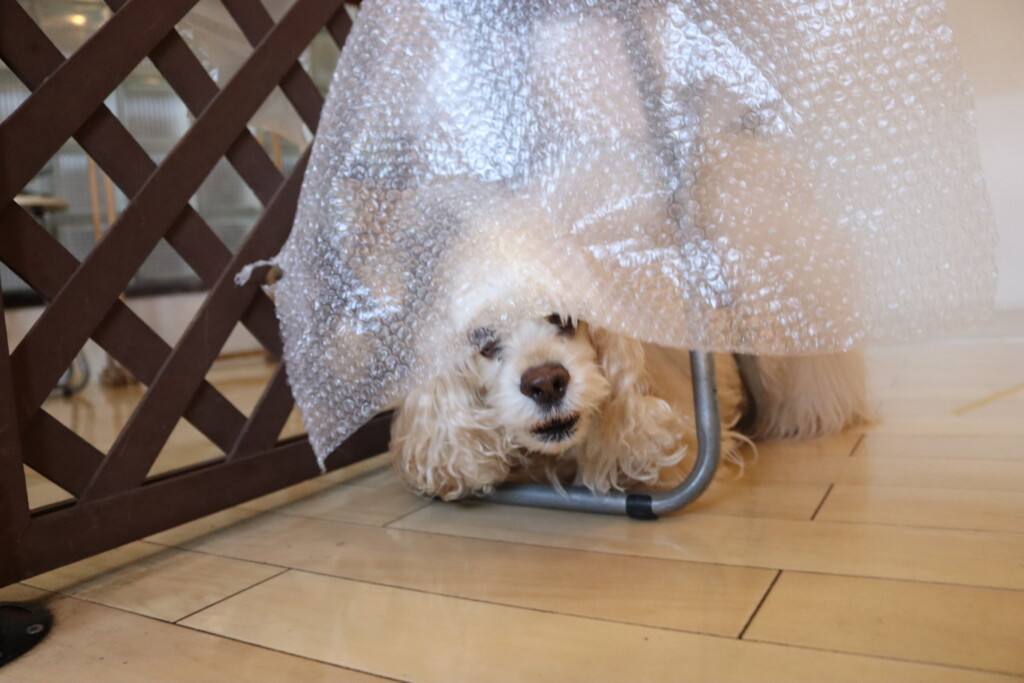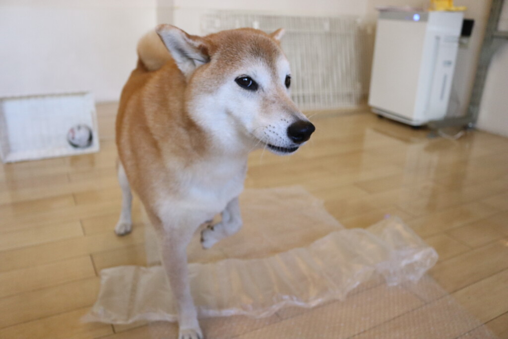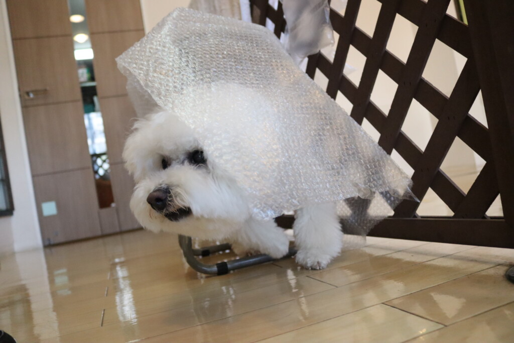 ノアくんはプチプチの緩衝材が苦手とのことだったので緩衝材慣れをしています!