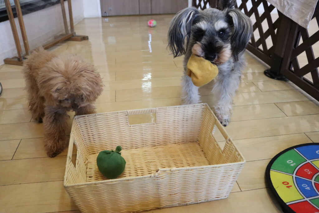 甜ちゃんとあずきちゃんは知育玩具を使ったトレーニング!