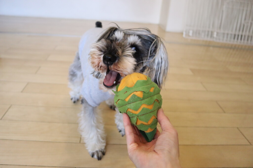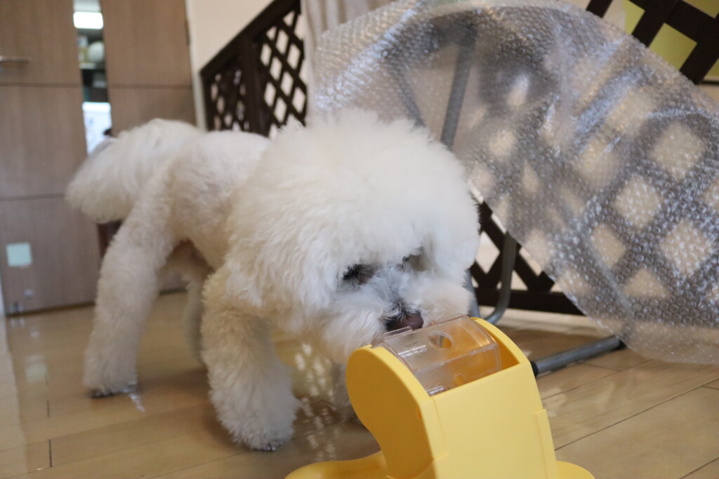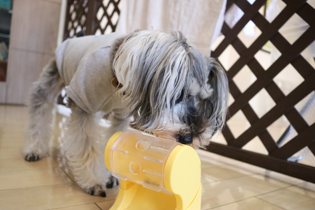 匂いチェックではフードの匂いがすると思わずこの表情(笑)
