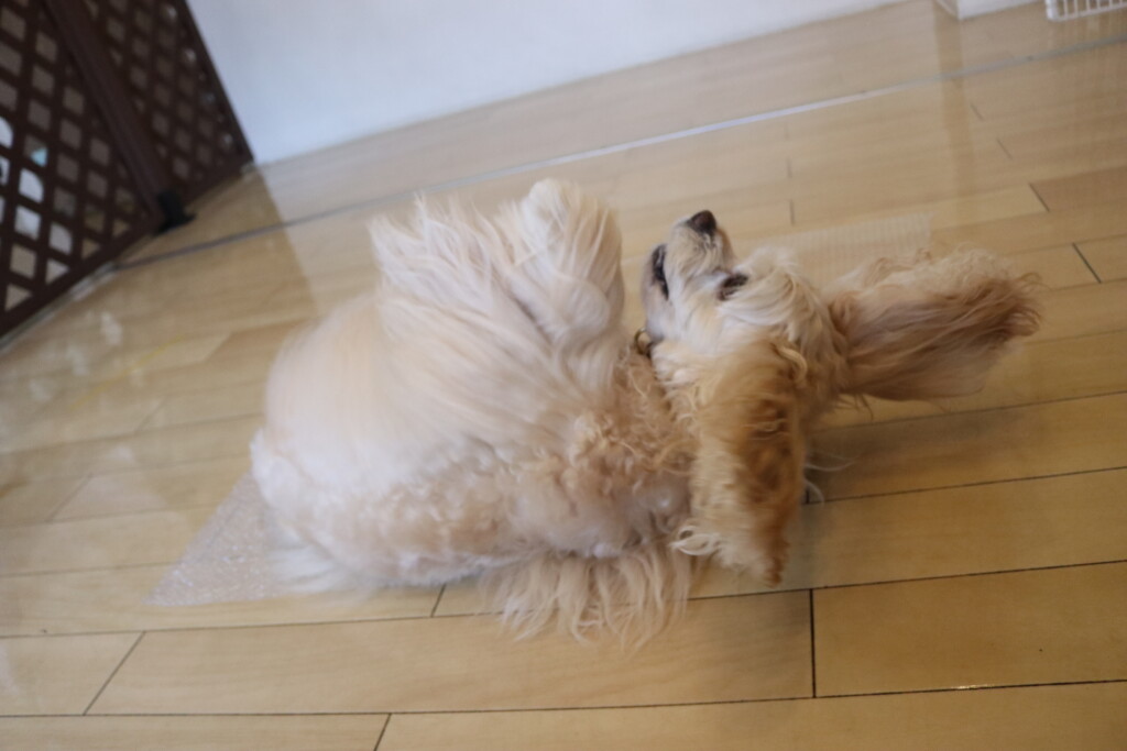 慣れてくると本体の上でフセをすることに成功…?