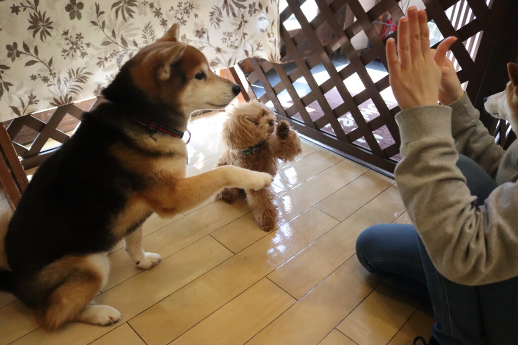 金ちゃんとこむぎちゃんは一緒にトレーニング!