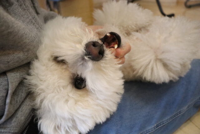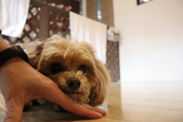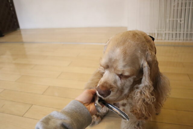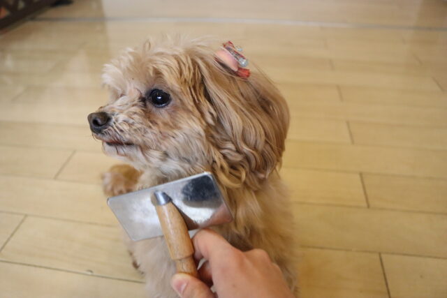 顔周りのブラッシングが苦手なようで常に遠くを見て現実逃避をしていました(笑)