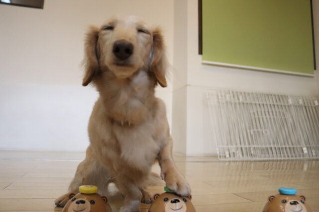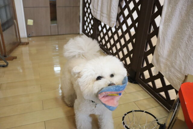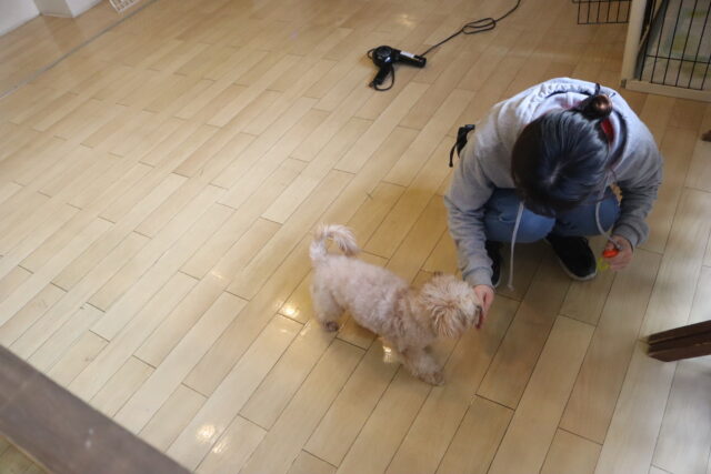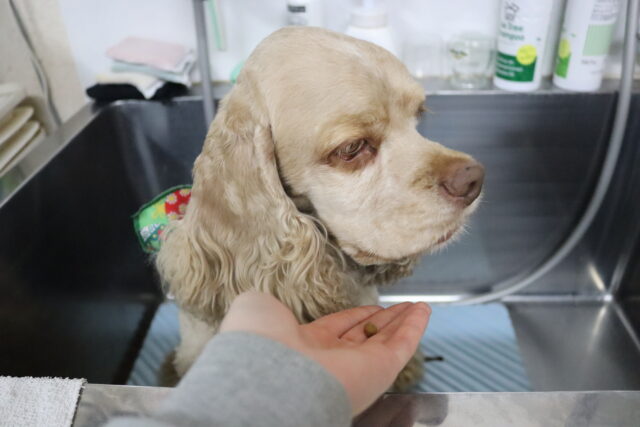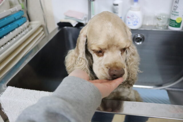 シャンプーをしたばかりということもあり少し緊張していましたが、しばらくするとフードを食べることが出来たね👏
