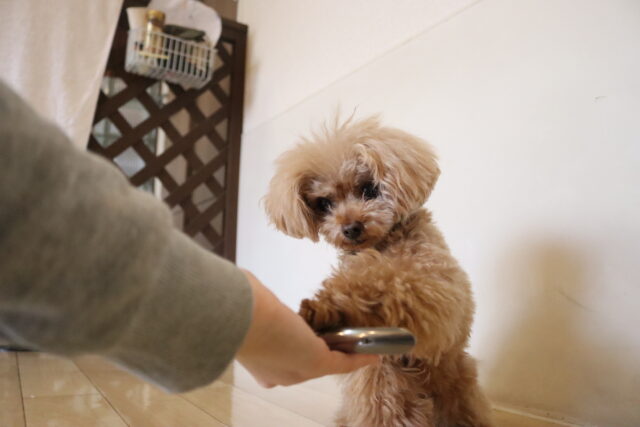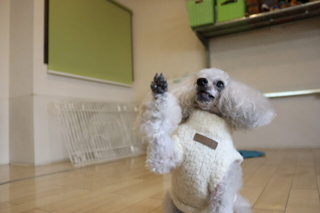「転んだ!」とマテのハンドサインを出すとしっかりと止まることが出来ています!