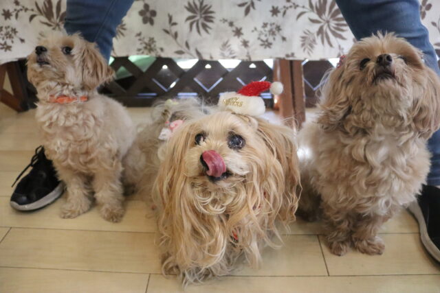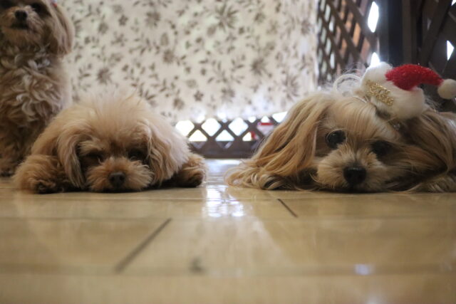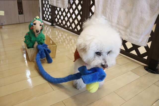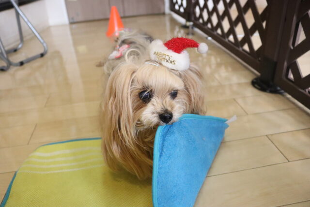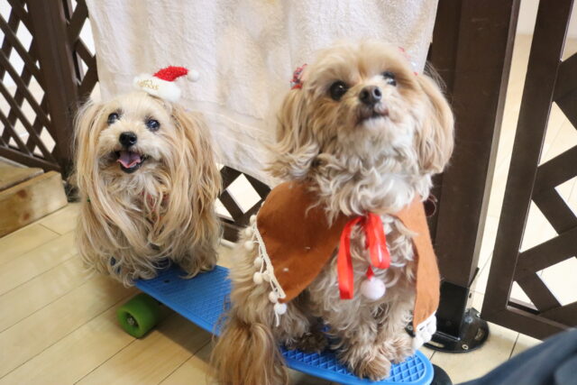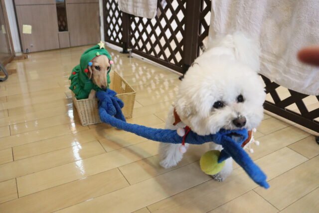 ルルちゃんとりれらちゃんはクリスマスの仮装をして一緒にトレーニング!