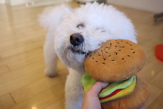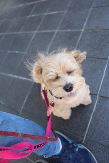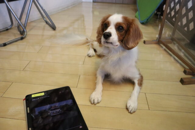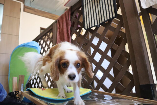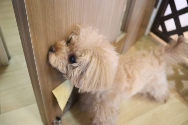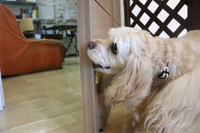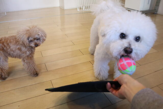 最近頑張っている呼び鈴鳴らしでは今回も鼻で慣らしてしまう姿が可愛かったです♡