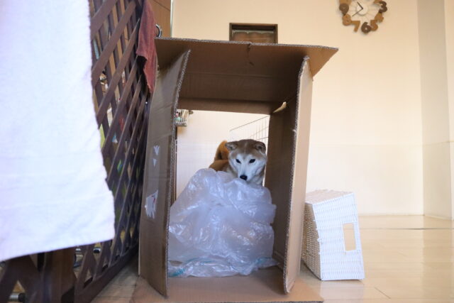 ダンボールの中にビニール袋も入っていたのでしばらく睨めっこ状態でしたが、最後は勇気を振り絞って通過することが出来たね👏
