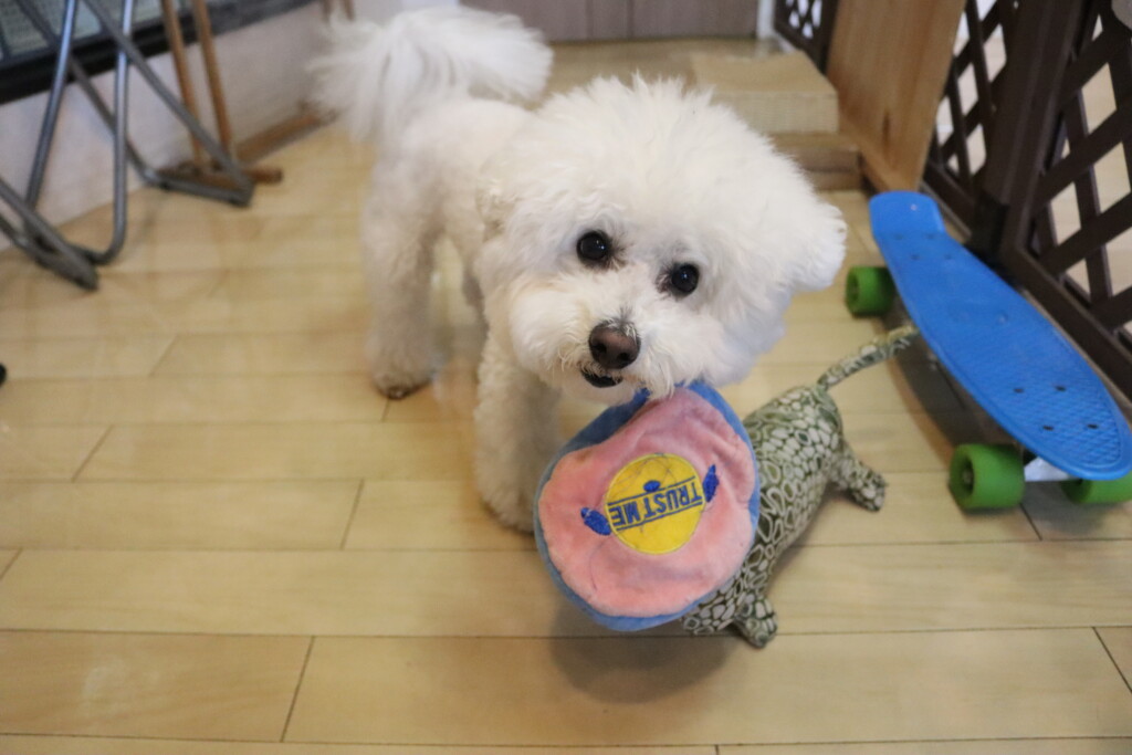 今回はすぐに自分のオモチャと気が付いたようでルンルンでオモチャを持ってきてくれましたよ♪