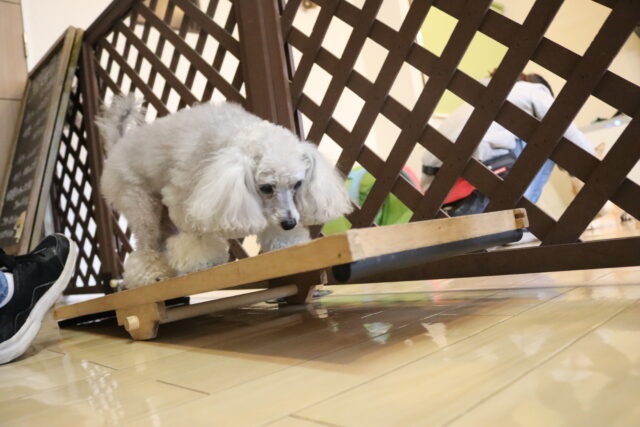 イスくぐりやシーソーなど警戒しながらも諦めずに取り組んでくれていましたよ♪